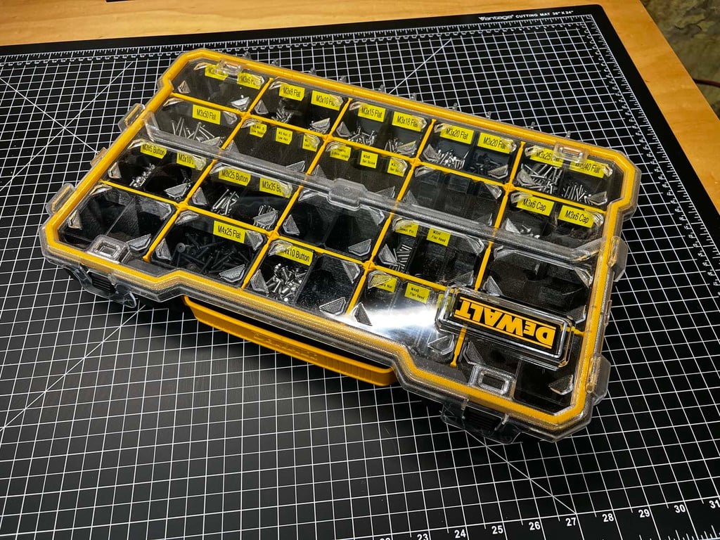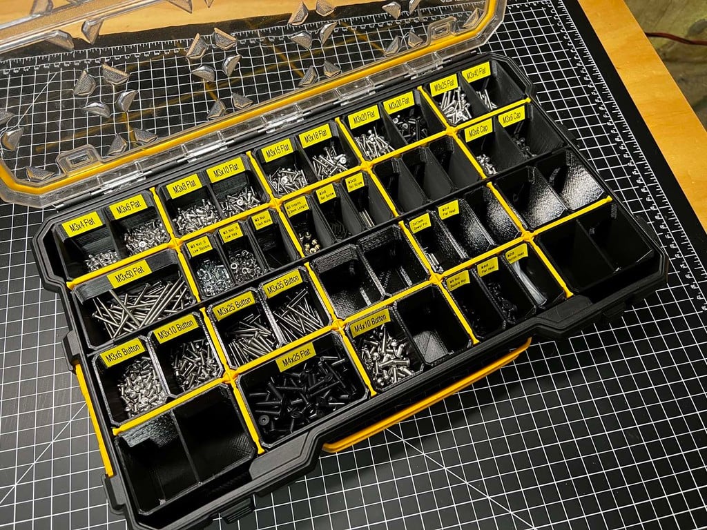 Estas cajas de almacenamiento modulares están diseñadas para optimizar la organización de piezas pequeñas en la configuración de su taller. Están diseñados específicamente para encajar en el organizador de piezas pequeñas Pro de 10 o 20 compartimentos de DeWalt, donde pueden aumentar su capacidad de almacenamiento de tornillos, pernos y otros componentes pequeños hasta dos o tres veces.