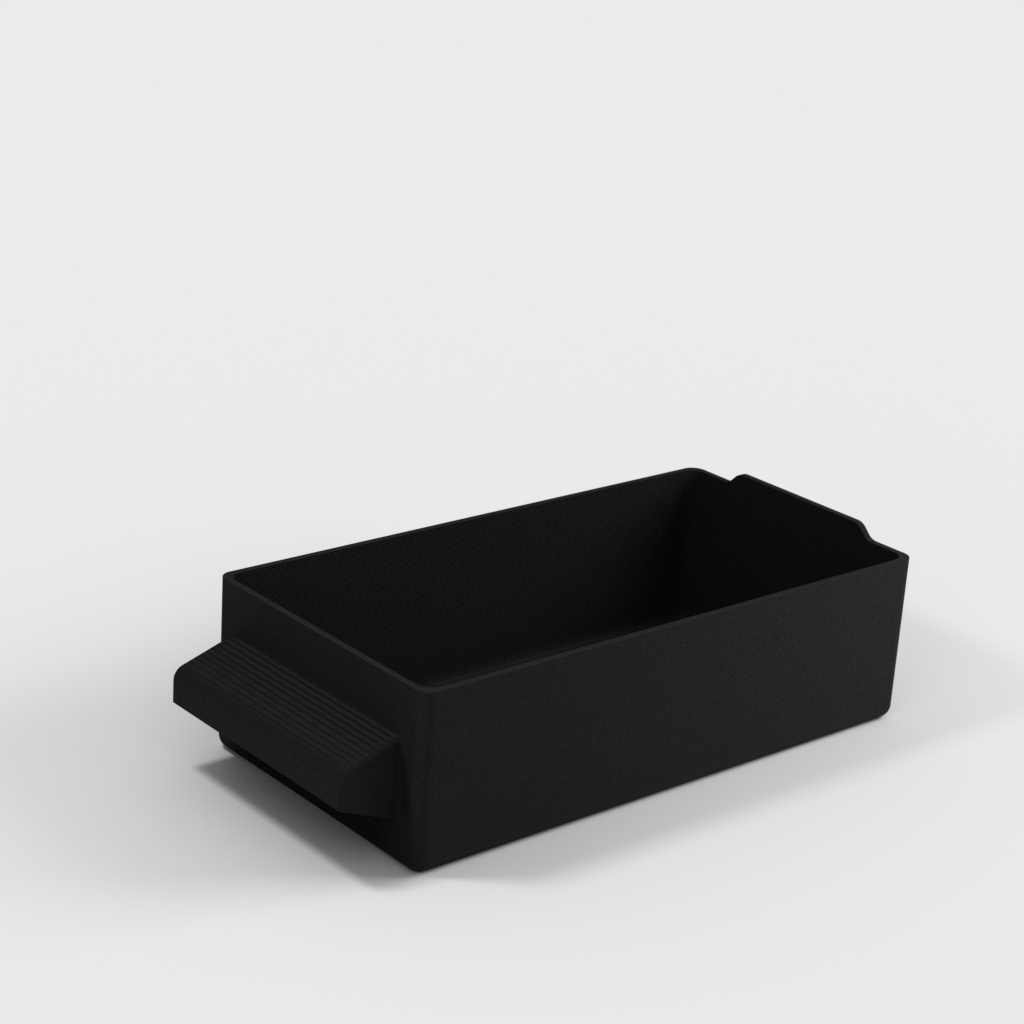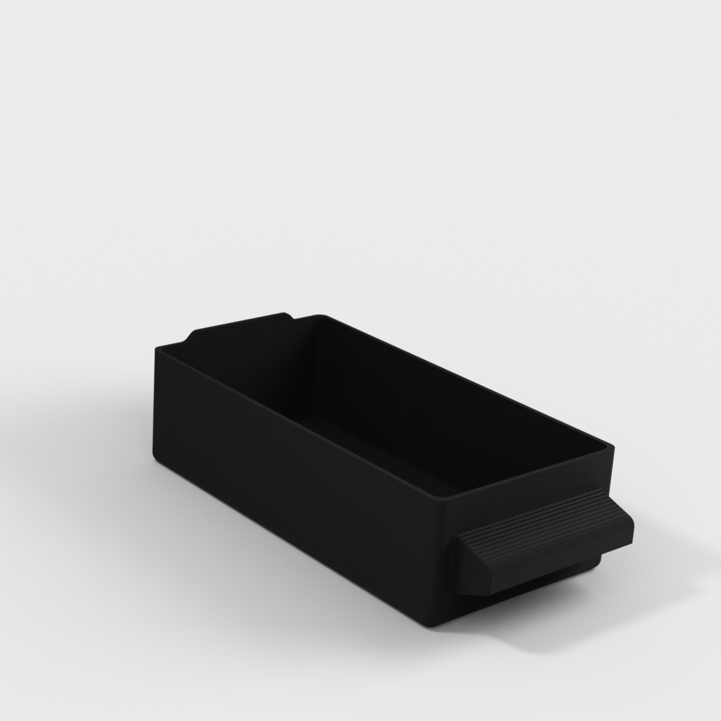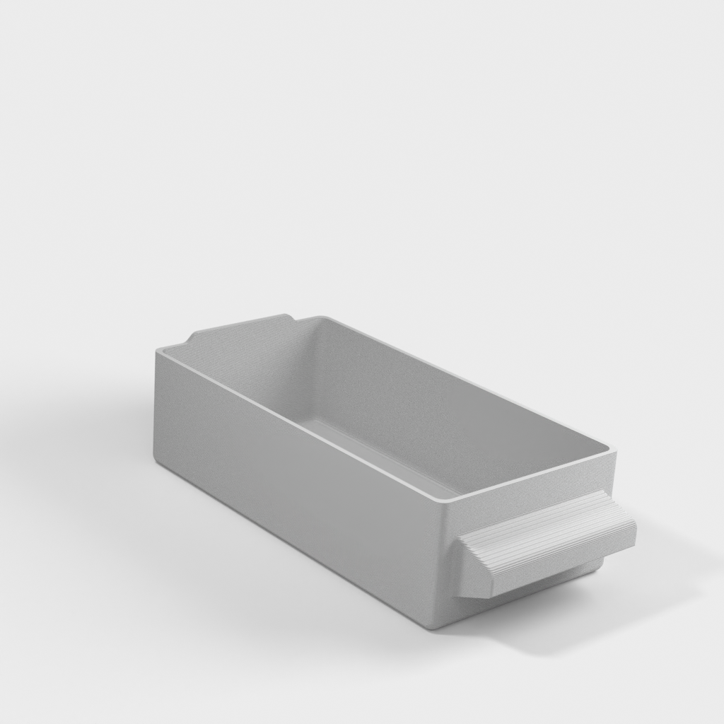 Con dimensiones externas de aproximadamente 128x36x65 mm, el cajón es adecuado para un uso eficiente del espacio. Es una adición funcional para aquellos que buscan una solución de almacenamiento estructurada para piezas pequeñas en el taller, la sala de pasatiempos o la oficina.