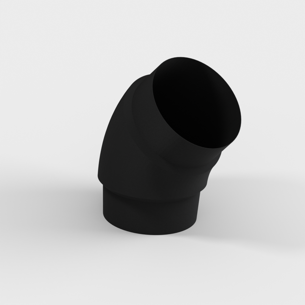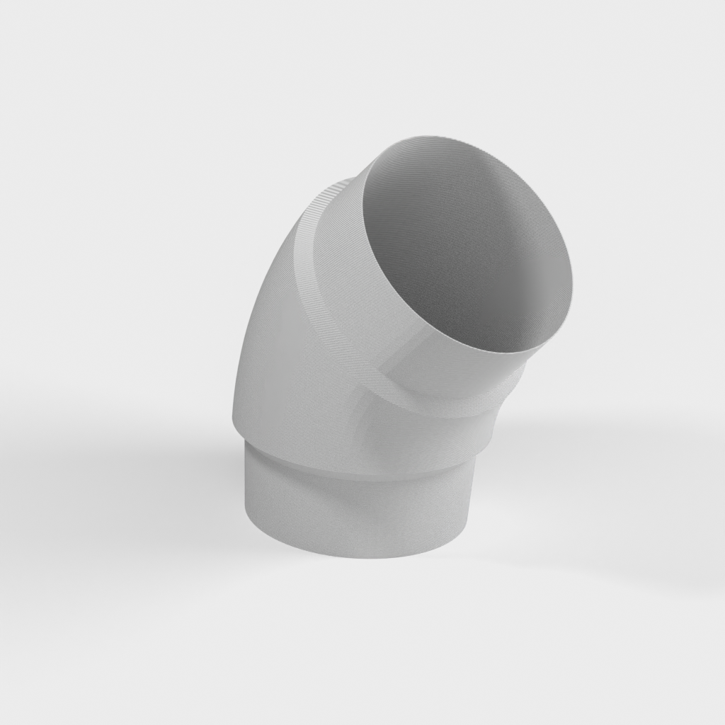 Con su práctica curva de 45 grados, permite una instalación flexible y la adaptación de su configuración de recogida de polvo. El diseño permite un ajuste por fricción, lo que significa que no se necesita pegamento durante el montaje. Esto hace que la instalación sea rápida y sencilla, y también permite un fácil desmontaje y reutilización del sistema, por ejemplo, al realizar cambios en el diseño del taller. Es una solución ligera y rentable que ofrece una gran flexibilidad en su proyecto de gestión del polvo.