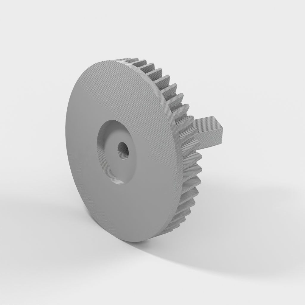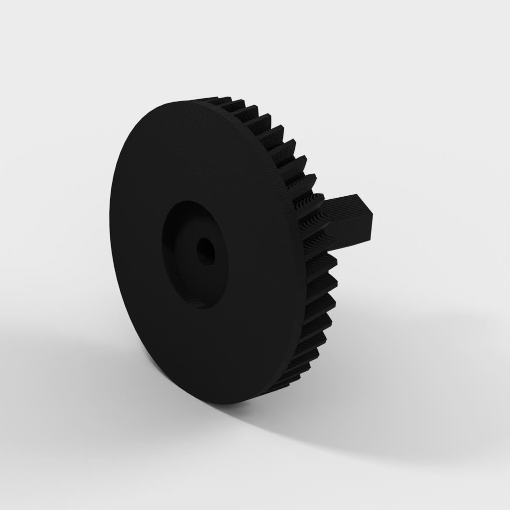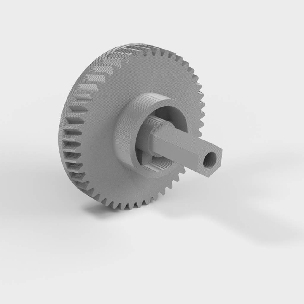 El engranaje está construido para encajar con precisión en el sistema existente, lo que garantiza una integración perfecta. Para lograr la mejor durabilidad y rendimiento, se recomienda fabricar el engranaje con un material fuerte y duradero. La forma hexagonal exterior proporciona un agarre seguro para el cepillo lateral, mientras que el orificio redondo interior se adapta a un tornillo M3x8.