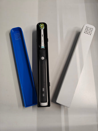 Descubre este práctico estuche de viaje, creado para proteger tu cepillo de dientes eléctrico Oral-B durante los viajes o para un almacenamiento organizado en casa. El estuche está diseñado para mantener el cepillo de dientes firmemente en su lugar con una función de ajuste a presión fácil que garantiza la estabilidad y evita el movimiento. La tapa encaja de forma segura en su lugar, lo que brinda una protección robusta contra influencias externas. Cuando necesites usar tu cepillo de dientes, es fácil de quitar con un simple toque. La última versión del estuche incluye una parte inferior mejorada con un soporte más estrecho y flexible que optimiza aún más el ajuste y la resistencia al uso diario y a posibles golpes.