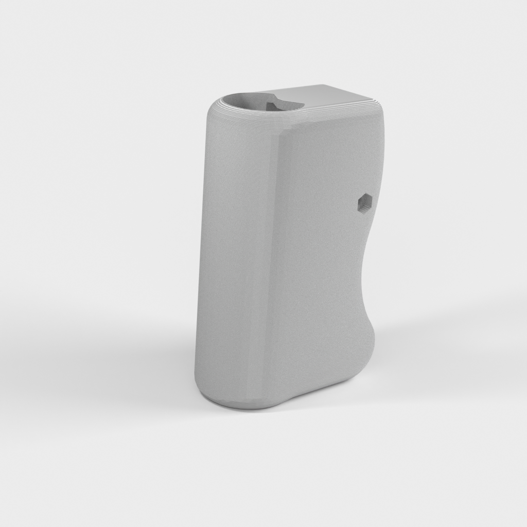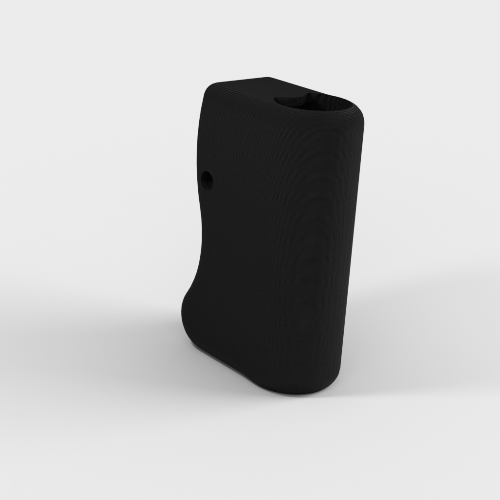 El mango está diseñado para reutilizar el brazo original y requiere un tornillo M3x30mm como eje para el montaje. Al reemplazar un mango defectuoso, extiende la vida útil de su valioso soporte de guitarra y evita la necesidad de una solución completamente nueva. Para los usuarios que deseen personalizar o modificar la pieza, se incluye el archivo fuente FreeCad.