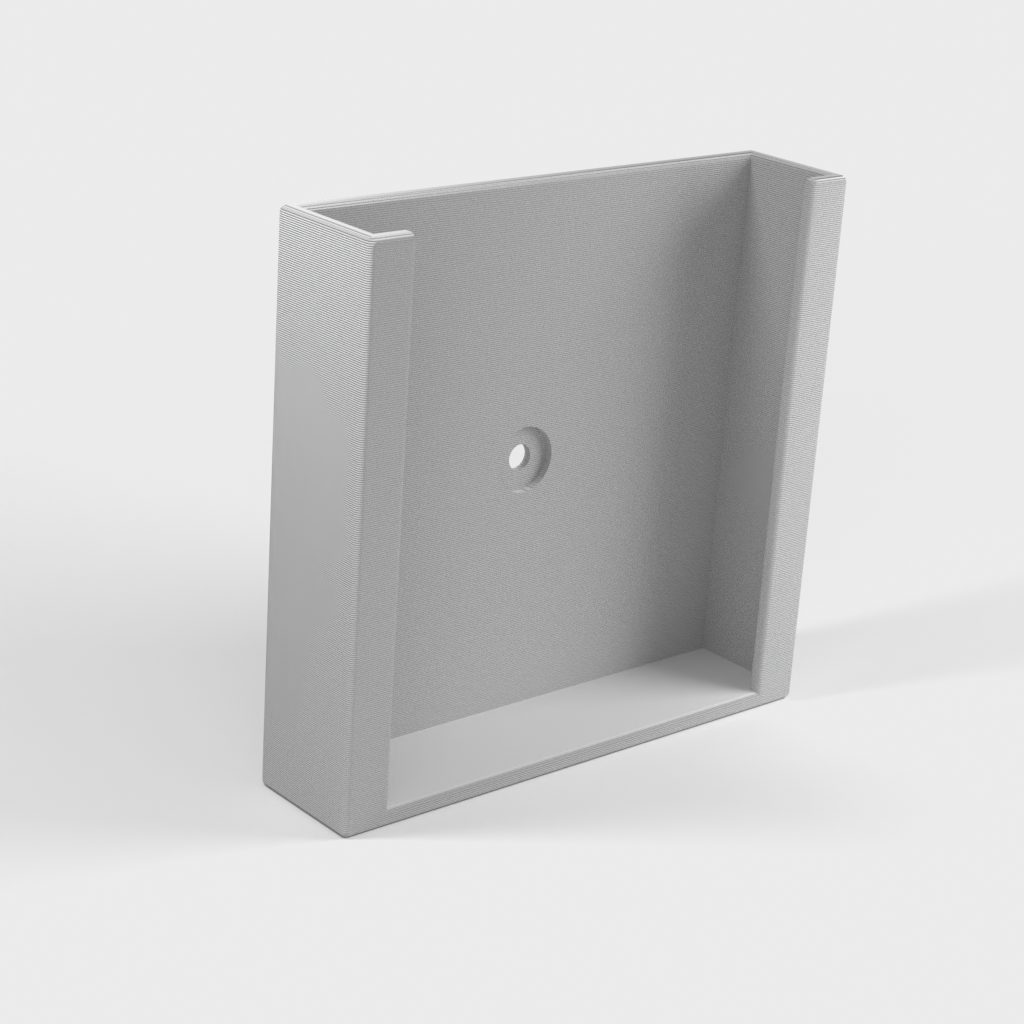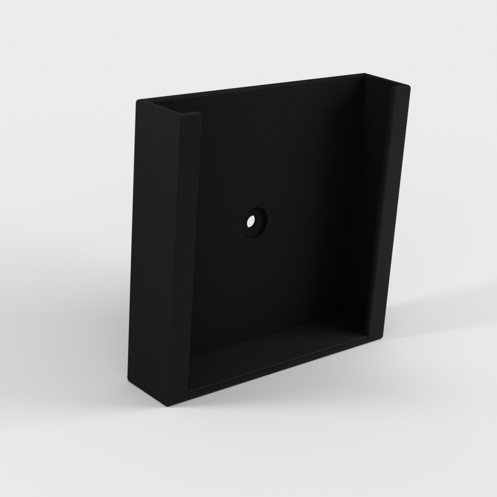 El montaje es fácil de instalar; puede optar por fijarlo con un solo tornillo a través del discreto orificio en el centro o utilizar pegamento para un montaje invisible en una superficie lisa. Esta solución elimina la molestia de buscar el mando a distancia y se integra perfectamente en la decoración de su hogar.