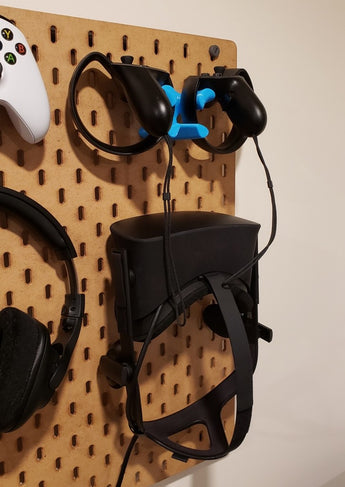 Este montaje en pared está creado para proporcionar una solución de almacenamiento óptima para su auricular VR Oculus Rift S, Quest o CV1. Está diseñado para encajar perfectamente en una placa de pared IKEA Skadis, lo que le permite utilizar su espacio de pared de forma eficaz y mantener ordenado su sistema de juegos o multimedia.