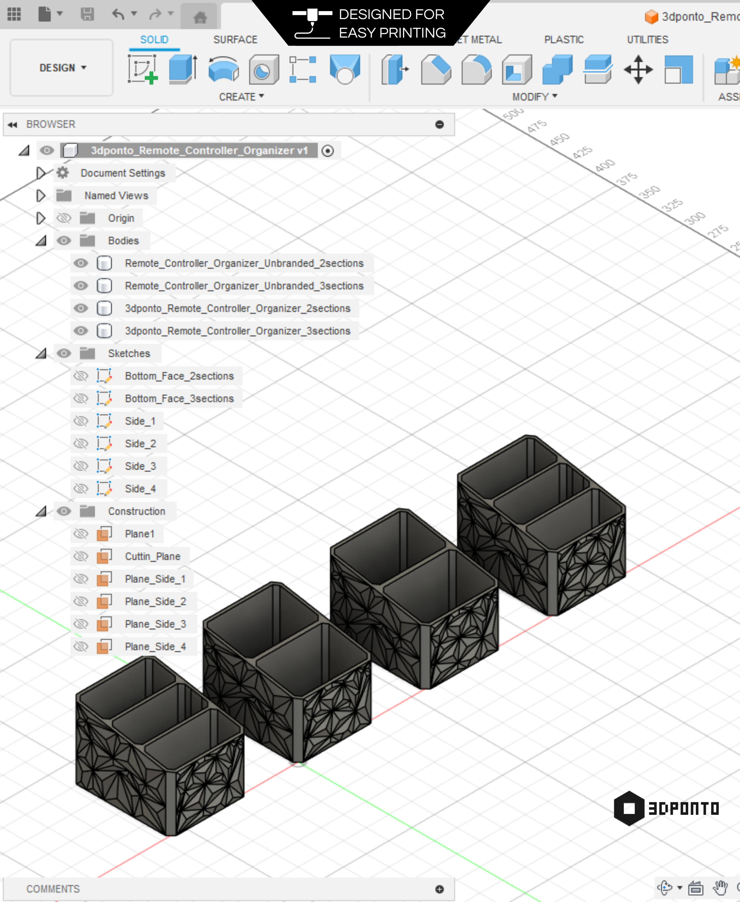 Este moderno organizador de mandos a distancia impreso en 3D está diseñado para crear orden y claridad en su hogar. Está disponible con dos o tres compartimentos, lo que ofrece espacio para varios mandos a distancia, incluidos los modelos más grandes, como los de los aparatos de aire acondicionado. Los compartimentos abiertos garantizan que pueda acceder fácilmente a los botones y manejar sus dispositivos sin tener que sacar los mandos a distancia del soporte.