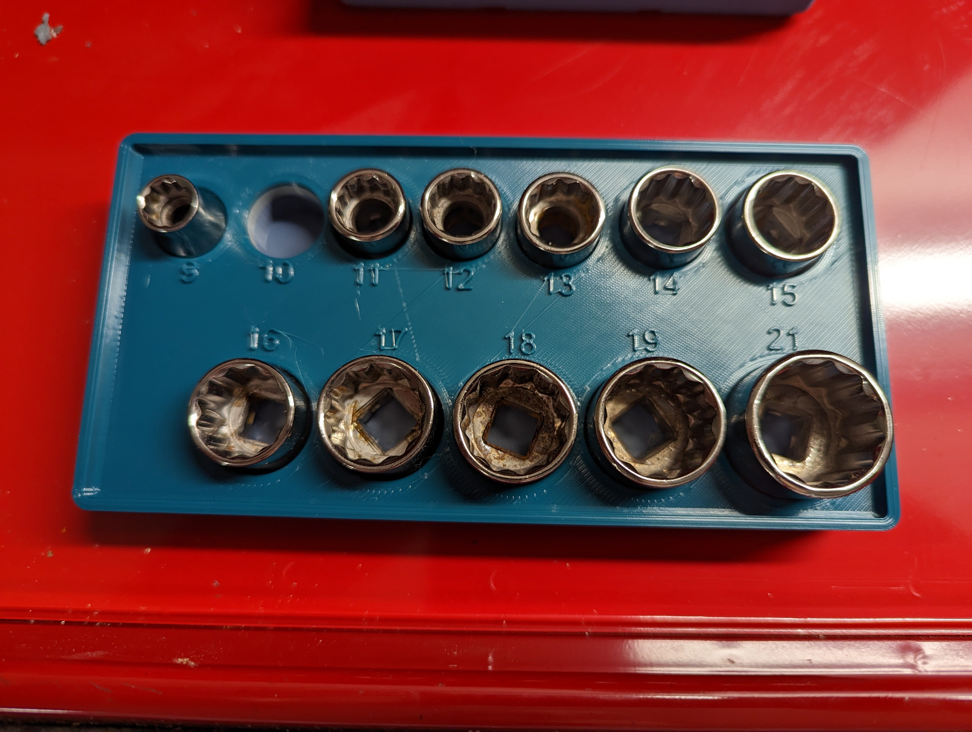 Gridfinity: organizador para llaves de vaso métricas Craftsman de 3/8" y 12 puntas
