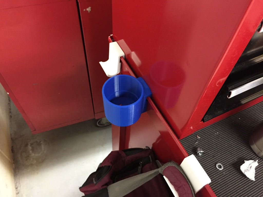 Este portavasos está diseñado para brindar una solución conveniente para guardar su bebida en el lugar de trabajo. Se fija fácilmente a su caja de herramientas, como una caja de herramientas Craftsman, y mantiene su taza segura al alcance. Al mantener las bebidas alejadas de la superficie de trabajo, se minimiza el riesgo de derrames y puede mantener un espacio de trabajo organizado y eficiente. Este portavasos funcional es un accesorio simple pero eficaz para artesanos y entusiastas del bricolaje que desean mantenerse hidratados sin interrumpir el trabajo.