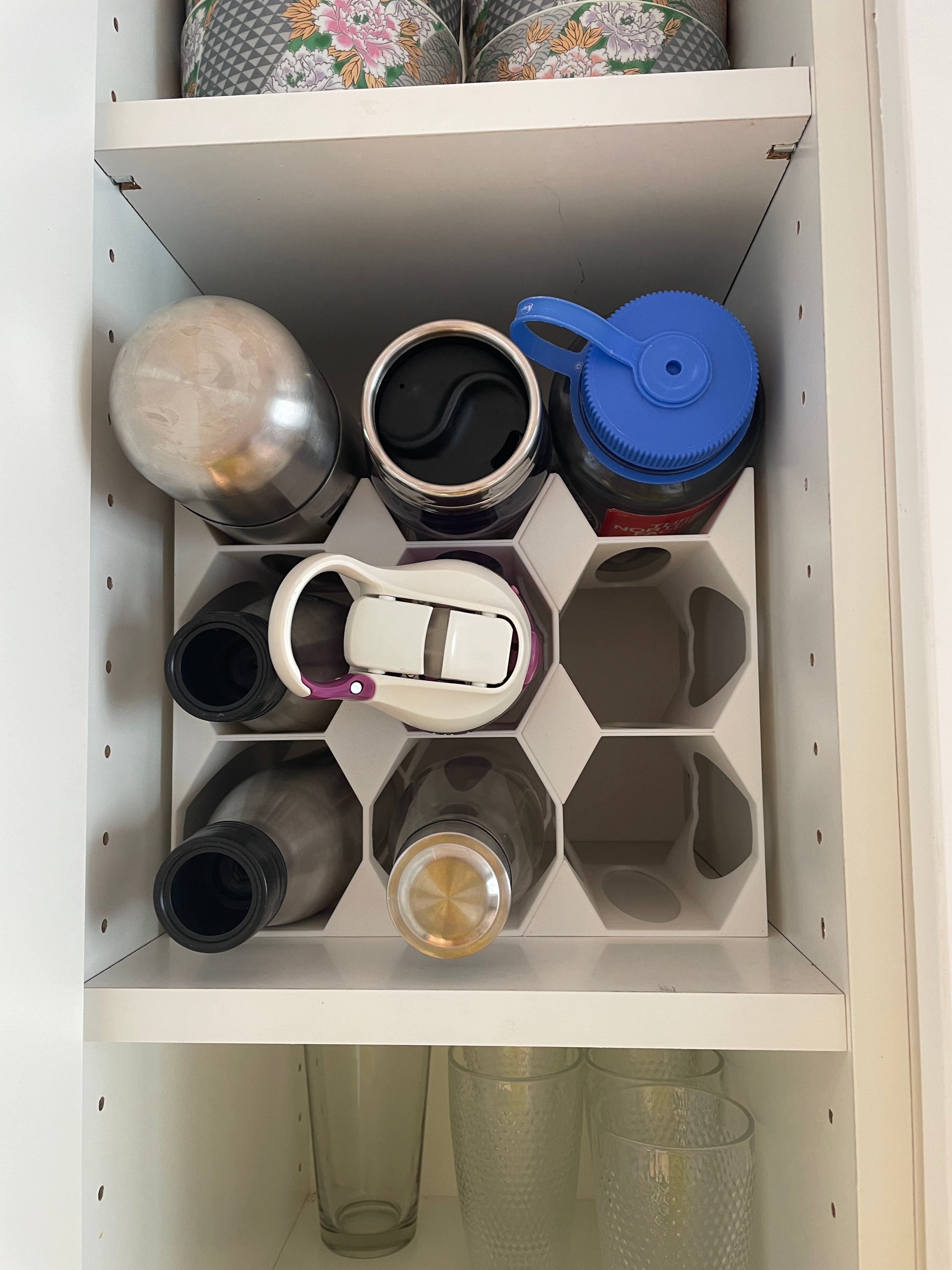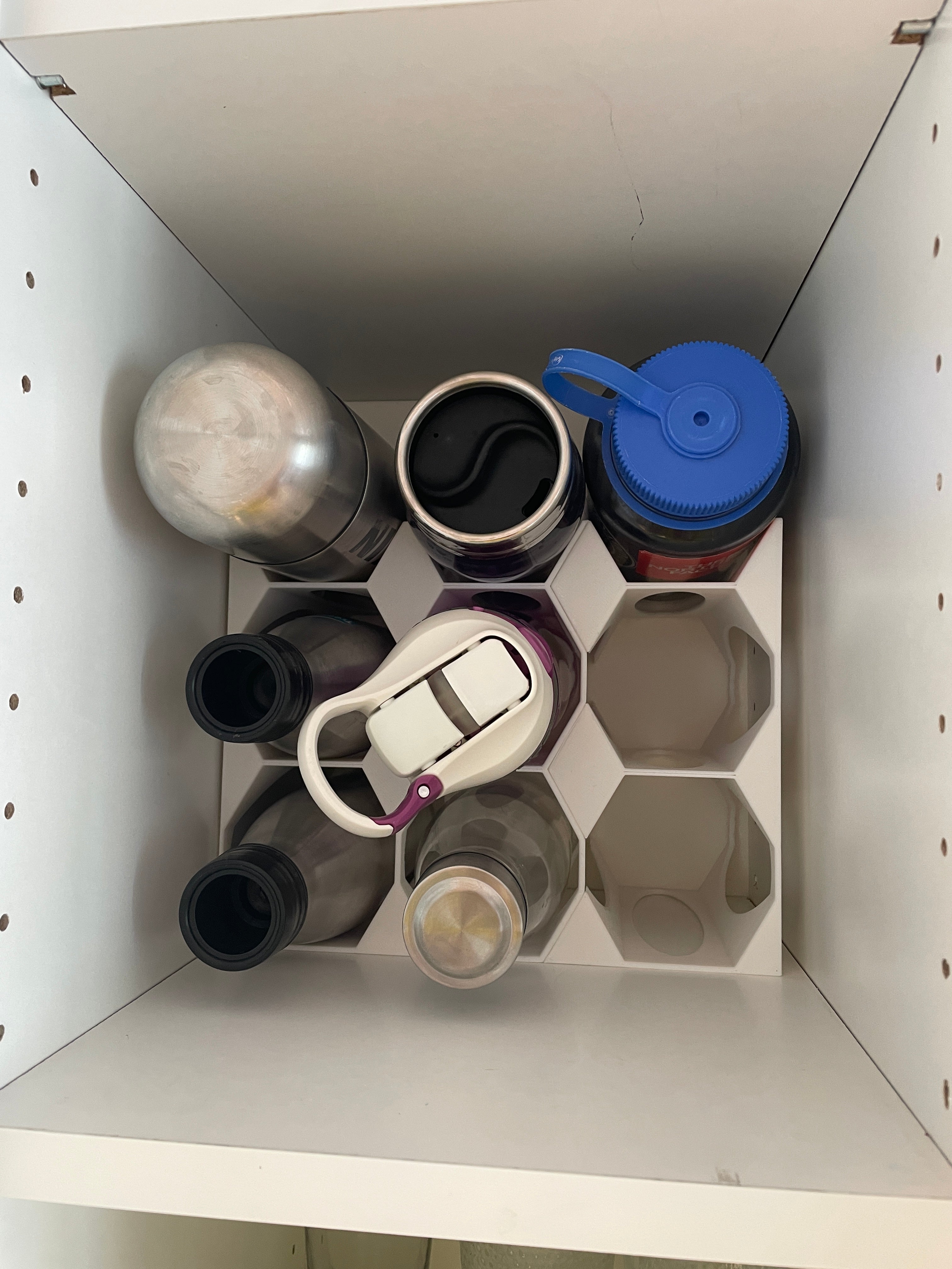 El estante ofrece un almacenamiento flexible, donde los dos niveles inferiores pueden acomodar botellas con un diámetro de hasta 79 mm. El nivel superior es lo suficientemente espacioso para una botella Nalgene o botellas similares con un diámetro de hasta 92 mm. Esto le permite almacenar diferentes tipos de bebidas juntas.