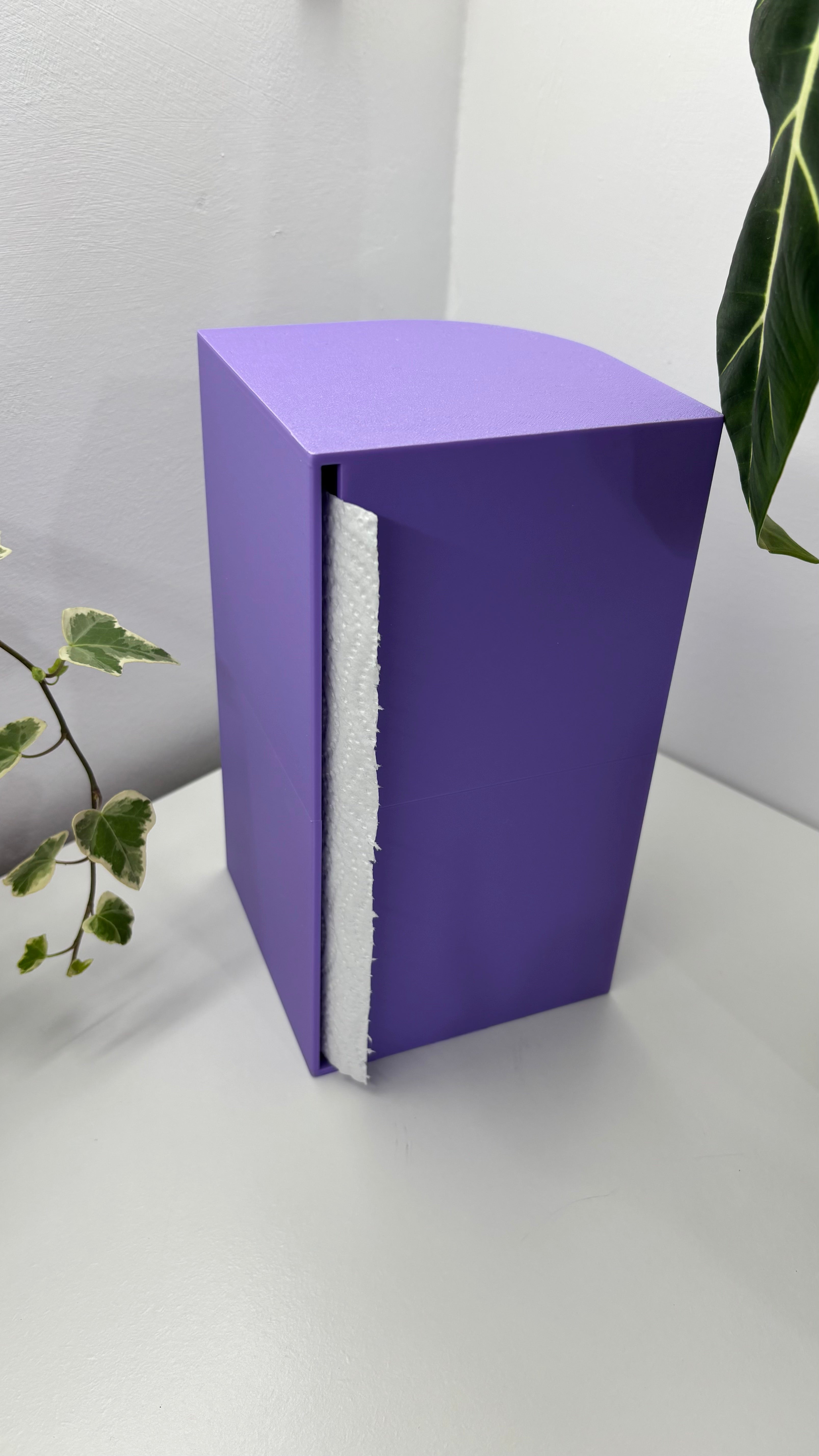 Este soporte imprimible en 3D incluye un borde circular redondeado en un lado que facilita la extracción de papel, ya sea desde la parte superior o desde el lateral. El diseño minimalista encaja a la perfección como un elemento funcional y elegante en cualquier hogar moderno, y ofrece un práctico accesorio tanto para el baño como para la cocina.