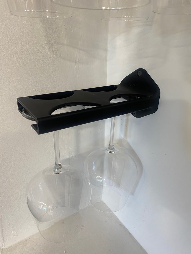 La instalación es sencilla y solo requiere tres tornillos de 4 mm (no incluidos) para un montaje sólido y confiable en la pared. Este diseño discreto ayuda a mantener sus superficies ordenadas y sus copas de vino fácilmente accesibles.