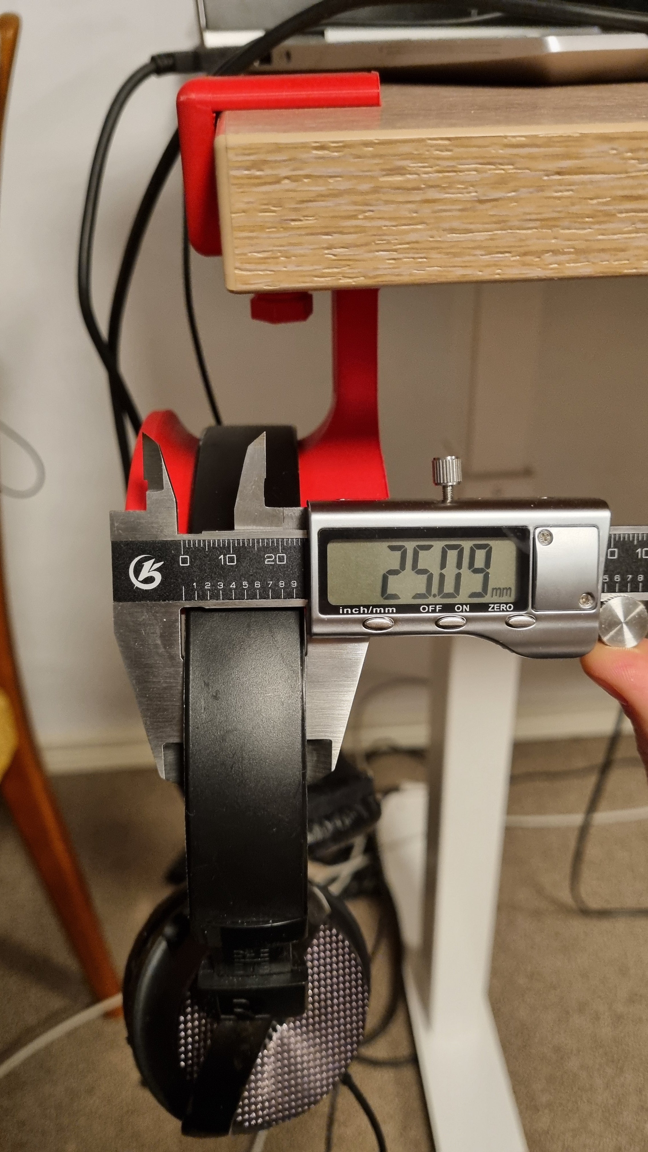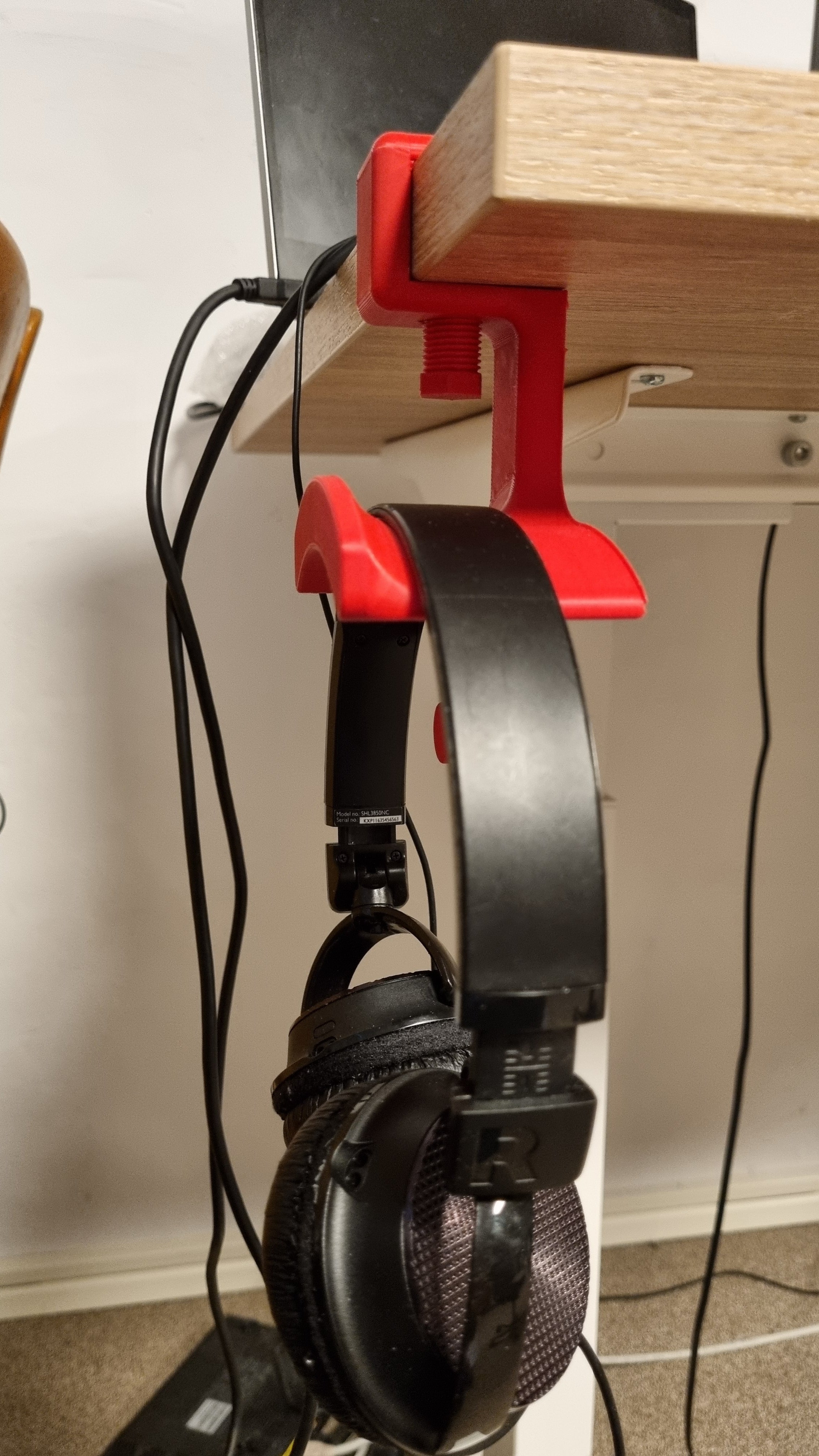 Además de su función principal como soporte para auriculares, este práctico accesorio está equipado con un gancho adicional en la parte inferior. Este gancho le permite colgar pequeños artículos adicionales, como cables, llaves u otros gadgets personales, lo que contribuye aún más a una configuración ordenada y eficiente. El diseño es adecuado para escritorios de hasta 25 mm de grosor y se adapta a la mayoría de los auriculares estándar, que tienen aproximadamente 150 mm de diámetro y 25 mm de ancho.
