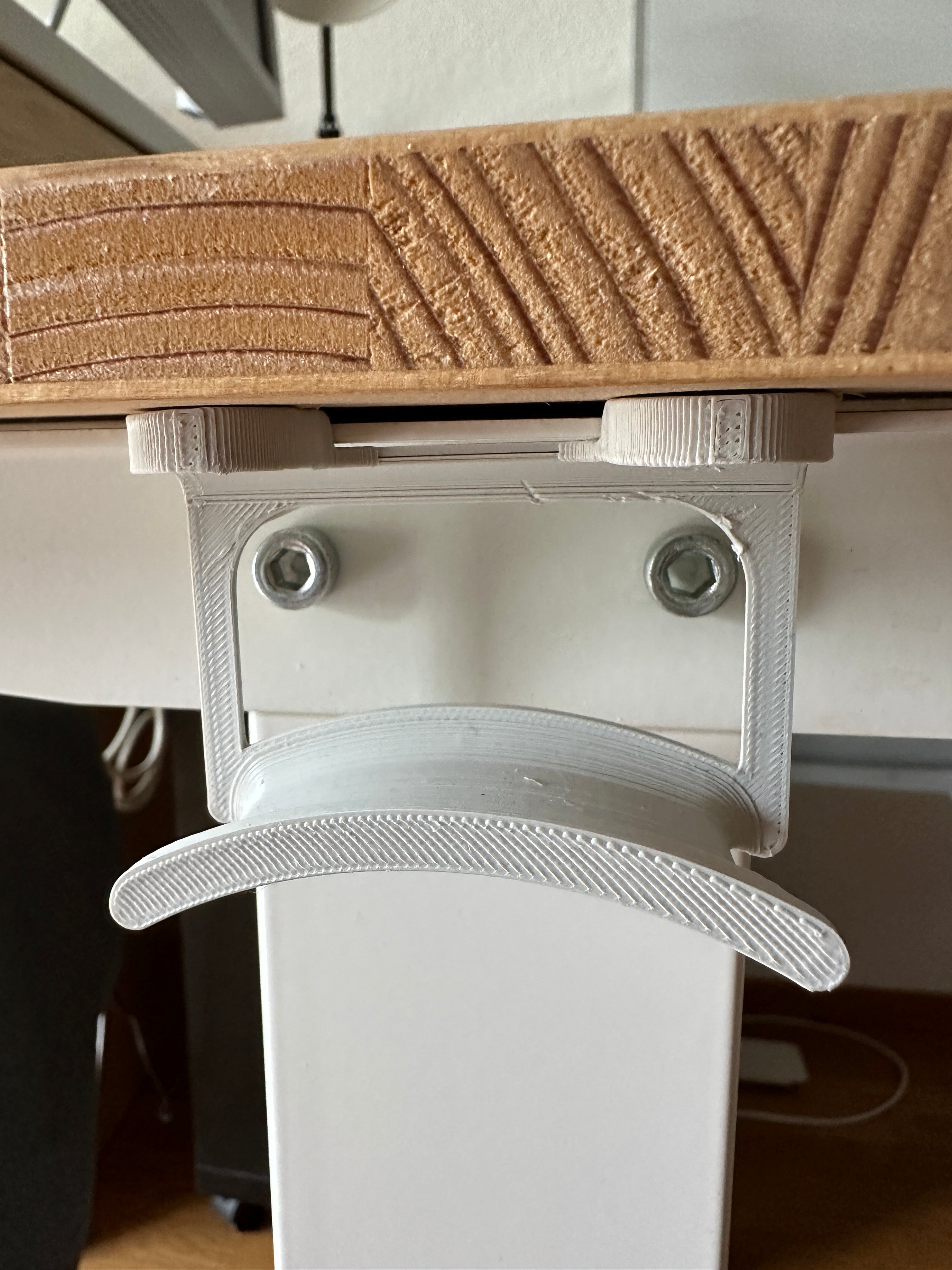 Este elegante soporte para auriculares está diseñado para optimizar su espacio de trabajo, proporcionando a sus auriculares Sony WH-1000XM5 una solución de almacenamiento segura y discreta debajo del escritorio. Evita el desorden en el escritorio y siempre tiene sus auriculares a mano cuando los necesita. El diseño minimalista garantiza que el soporte encaje a la perfección en cualquier decoración, sin llamar la atención innecesariamente. Aunque está hecho a medida para el Sony WH-1000XM5, este soporte para auriculares también se puede utilizar para otros modelos de auriculares con una diadema similar, lo que lo convierte en una solución versátil para su equipo de audio. La instalación es sencilla y solo requiere un par de tornillos para fijarlo debajo de su escritorio, para que pueda disfrutar rápidamente de los beneficios de un espacio de trabajo organizado y funcional.