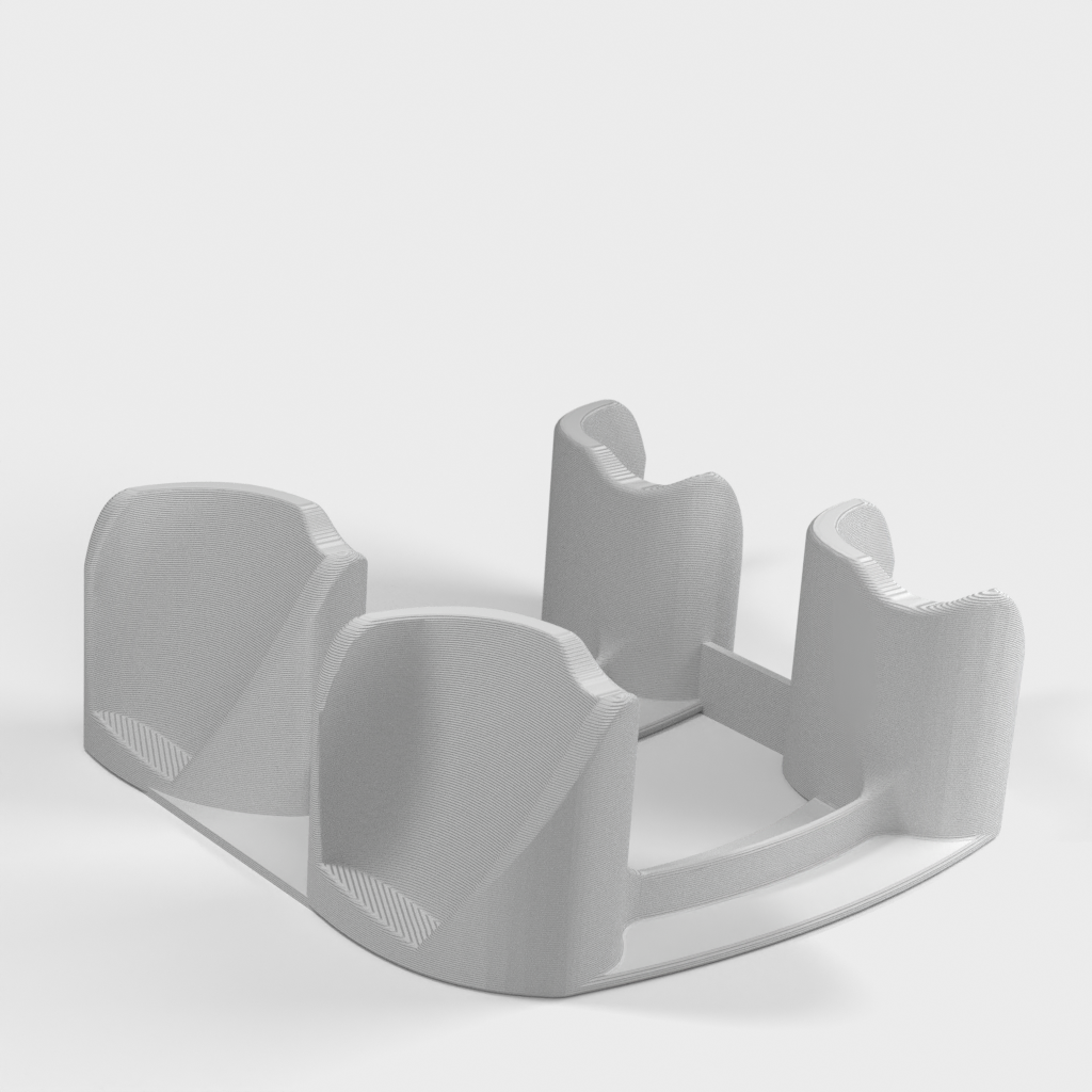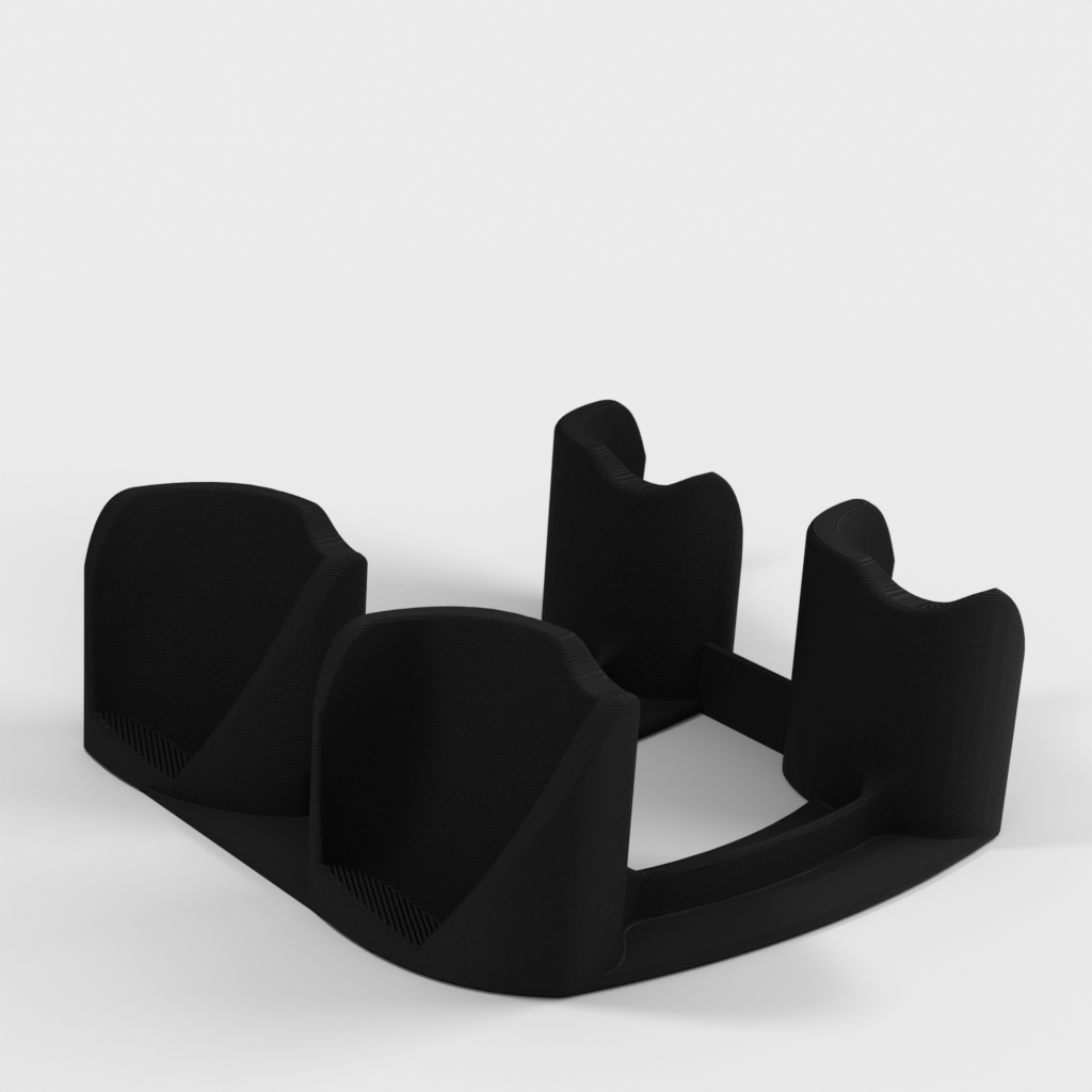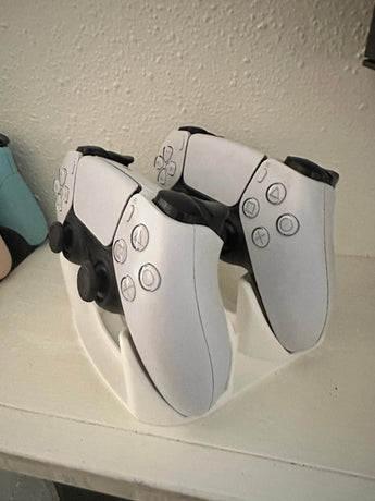 Este práctico soporte está diseñado para organizar y presentar dos mandos PS5 DualSense de forma elegante. Ofrece un espacio dedicado para tus mandos, manteniendo tu área de juego ordenada y asegurando que tus mandos estén siempre al alcance.
