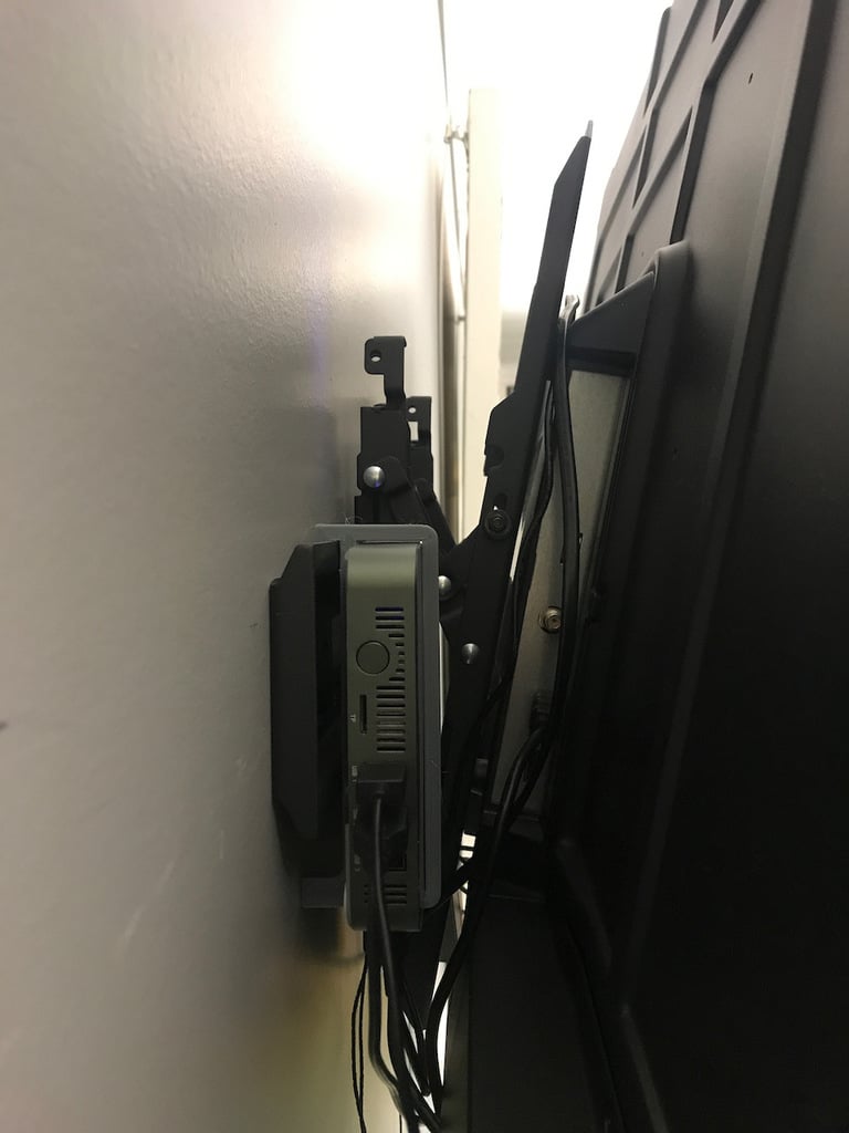 Este mini soporte para PC está diseñado para colocar su computadora compacta discretamente detrás del monitor. El soporte permite montar tanto su mini PC como el televisor en el mismo soporte de pared, lo que contribuye a una instalación ordenada y minimalista. Es una solución práctica para aquellos que buscan optimizar el espacio y reducir el desorden de cables alrededor de su sistema de entretenimiento o configuración de señalización digital.