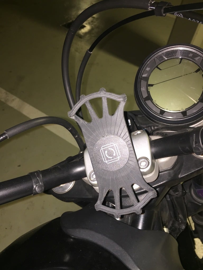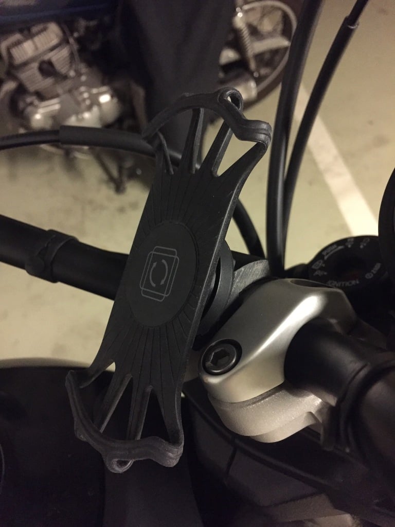 Su teléfono inteligente se mantiene seguro en su lugar con cuatro potentes bandas de goma que agarran cada esquina del teléfono. Luego, la placa adjunta se monta en una base robusta, que se fija discretamente al manillar de su motocicleta. Una característica práctica es que la placa se puede quitar y girar fácilmente, lo que brinda una visualización y flexibilidad óptimas mientras conduce.