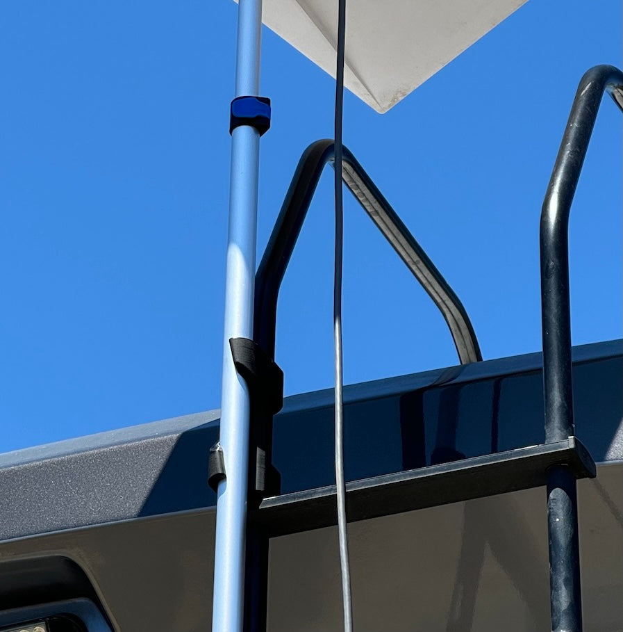 Los soportes están diseñados con precisión para encerrar los tubos verticales de 1 pulgada de diámetro. El ajuste ceñido garantiza una fijación estable y fiable, lo que minimiza el movimiento y mantiene su panel StarLink seguro en su lugar. El soporte superior sujeta el poste, mientras que la copa inferior soporta la parte inferior del poste contra la escalera.