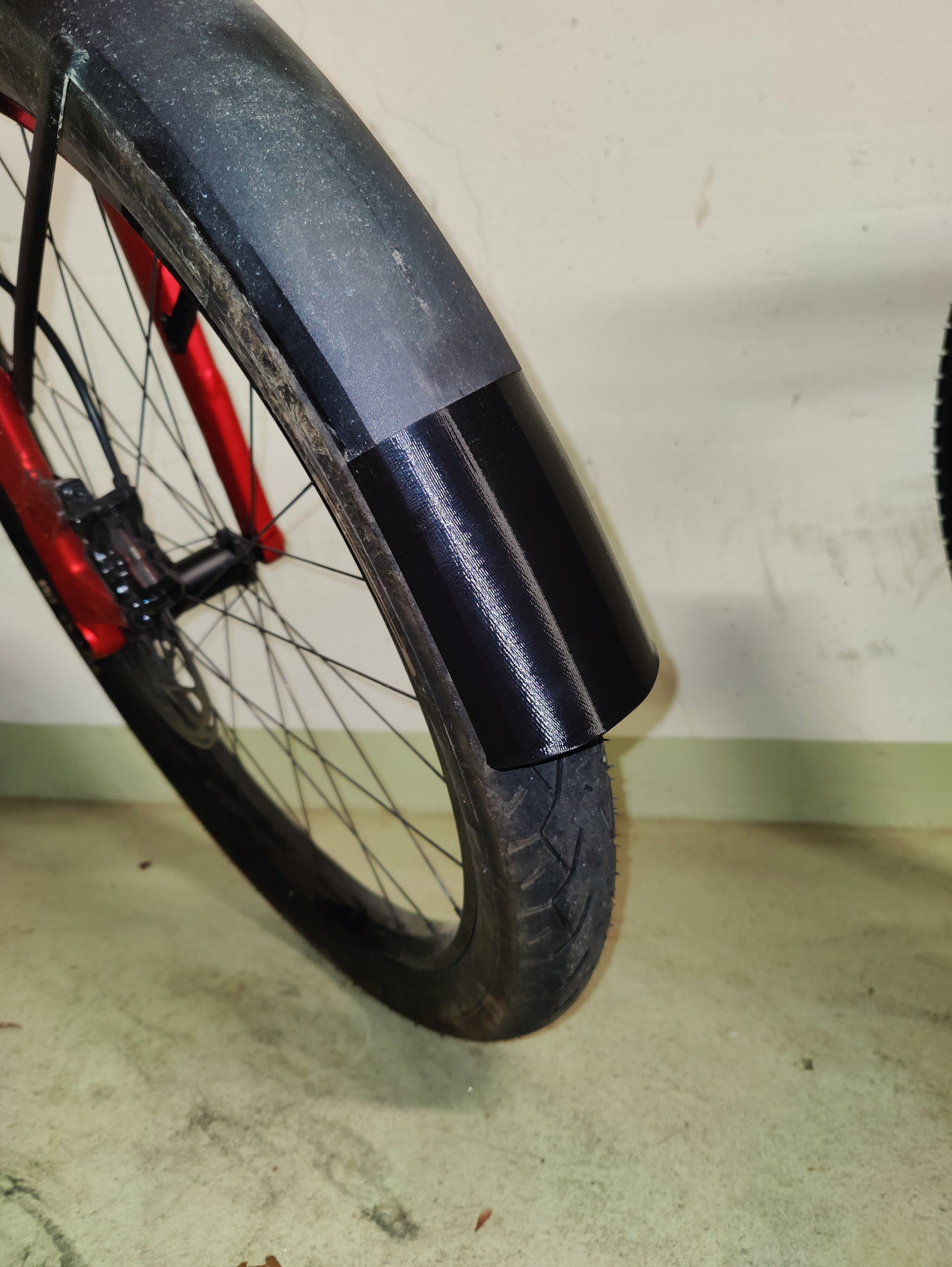 La extensión agrega 8 cm al guardabarros delantero de su bicicleta y es 1 cm más ancho en la parte inferior, lo que optimiza la cobertura contra las salpicaduras. La construcción, que consta de tres partes, se ensambla fácilmente y proporciona una unidad robusta. A diferencia de las piezas estándar que simplemente se encajan, esta extensión se monta de forma segura con tornillos, lo que garantiza que permanezca en su lugar en todas las condiciones de conducción. Los orificios existentes en el guardabarros delantero de la bicicleta se pueden utilizar para una instalación sencilla y directa.