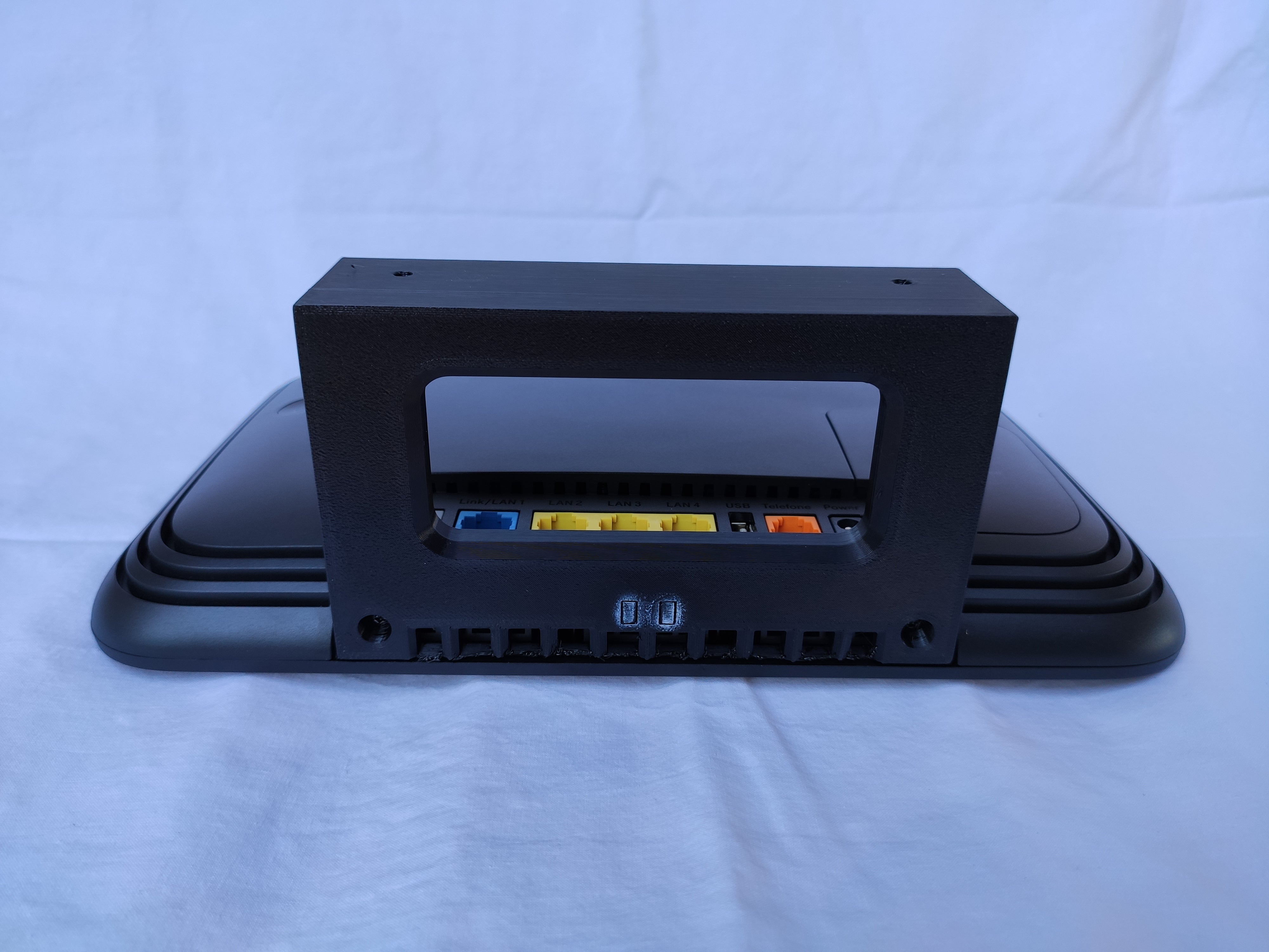 Este soporte de pared está diseñado específicamente para el router Telekom Speedport Smart 4 Plus y ofrece una solución funcional para montar el dispositivo en la pared. Funciona como un reemplazo para el soporte original y ayuda a liberar espacio en escritorios o estantes. Al colocar el router en la pared, puede lograr una configuración más organizada que reduce el desorden y brinda una apariencia más limpia.