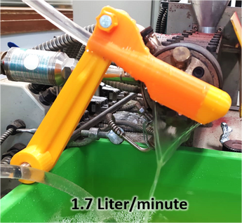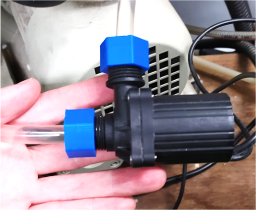 El diseño de la unidad principal permite conectarla a un tubo flexible con un diámetro de 10 mm, lo que hace que la instalación sea rápida y sencilla. Para una refrigeración óptima, se recomienda utilizar una bomba ajustable de 24V que pueda proporcionar entre 1,5 y 5 litros de agua por minuto. Ajustar el flujo a aproximadamente 2 l/min proporciona un equilibrio ideal entre un enfriamiento efectivo y una presión mínima sobre el filamento.