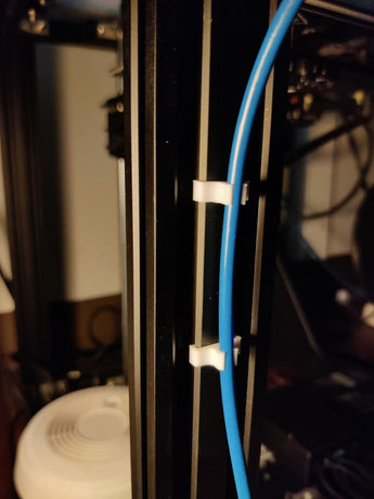 Este clip versátil está diseñado para fijarse de forma segura a las extrusiones de aluminio 2040, que se encuentran comúnmente en impresoras 3D como la Ender 5 Pro, por ejemplo. Ofrece una solución ideal para organizar y administrar varios tubos y cables en su configuración. El clip es perfecto para enrutar tubos de PTFE, lo que garantiza que permanezcan perfectamente en su lugar y evita enredos o movimientos innecesarios. Además de PTFE, también funciona como un eficaz clip para la gestión de cables para cables más gruesos, como los de las cámaras web, y ayuda a mantener su espacio de trabajo ordenado y funcional. Al utilizar este clip para cables, puede reducir el desorden y mantener un entorno más organizado alrededor de su equipo, lo que contribuye a un funcionamiento más fluido. El diseño robusto garantiza una sujeción fiable y ofrece una forma práctica de mantener su configuración limpia y eficiente.