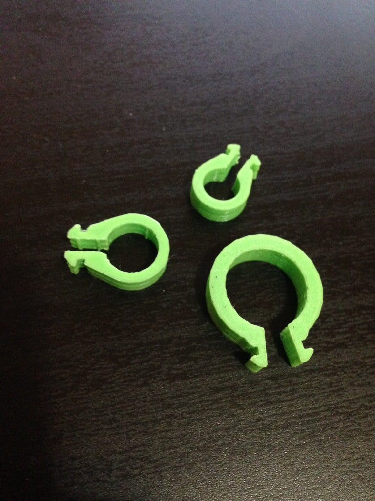El juego incluye tres tamaños diferentes para adaptarse a diversas necesidades de cables. El clip pequeño tiene un diámetro interior de 7,5 mm, el mediano mide 10 mm y el clip grande tiene un diámetro interior de 15 mm. El clip pequeño y mediano se asienta de forma estable en el riel y es ideal para cables individuales o pocos, mientras que el clip grande es adecuado para haces de cables más grandes, aunque puede tener un poco de movilidad.