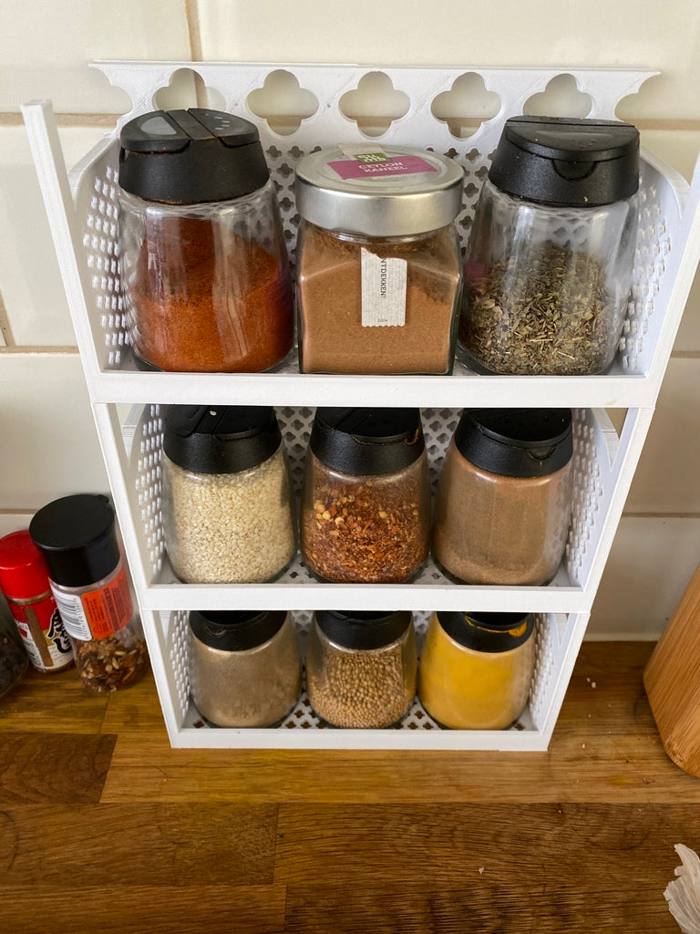 Este estante para especias está especialmente diseñado para adaptarse perfectamente a los tarros de especias IKEA 365+ IHÄRDIG, lo que proporciona un almacenamiento óptimo de especias en su cocina. El estante puede contener tres tarros de especias en una fila, con suficiente espacio sobre cada tarro para facilitar el acceso y la extracción. Para maximizar la capacidad de almacenamiento, se pueden apilar varios estantes uno encima del otro, lo que proporciona una solución flexible y que ahorra espacio. Esto facilita mantener sus especias organizadas y al alcance de la mano, lo que contribuye a una experiencia de cocina más ágil.