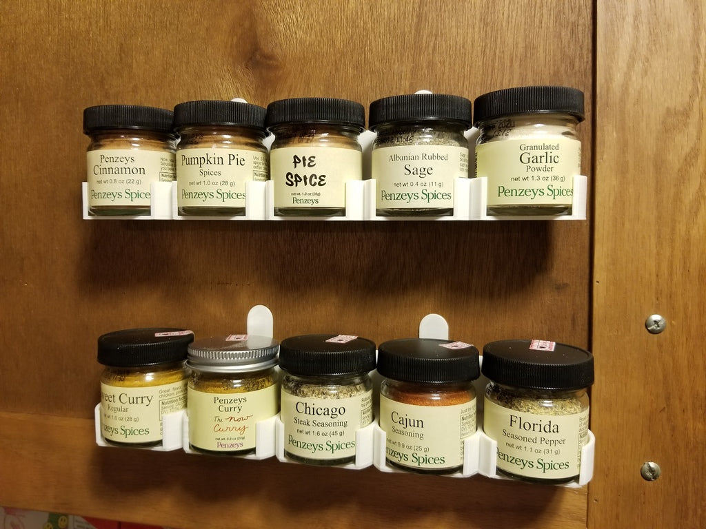 El estante para especias Penzeys ofrece una solución práctica para guardar tus especias favoritas. Este estante para especias funcional está diseñado para contener hasta cinco tarros de especias, lo que facilita mantenerlos organizados y al alcance durante la cocción. El estante puede colocarse de forma independiente en un estante o montarse en la puerta de un armario con tiras 3M Command para aprovechar al máximo el espacio. También se puede fijar con tornillos para una instalación más permanente. Este almacenamiento de especias ayuda a crear una visión general en la cocina, para que pueda encontrar rápidamente la especia adecuada.