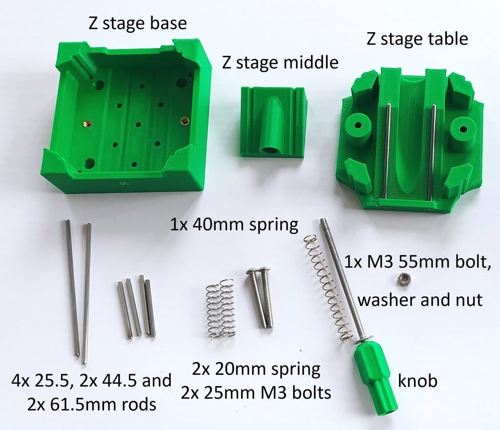 La etapa lineal impresa ortogonalmente está diseñada para ofrecer alta precisión en el posicionamiento, con una exactitud de alrededor de 10 micrómetros. Este producto es ideal para proyectos de investigación o aplicaciones donde los movimientos precisos son fundamentales. Con sus piezas impresas en 3D y pocos componentes mecánicos, como barras de metal de 2 mm, un resorte de 40 mm y un tornillo M3 de 55 mm con tuerca y arandela, esta etapa lineal es tanto simple como efectiva.