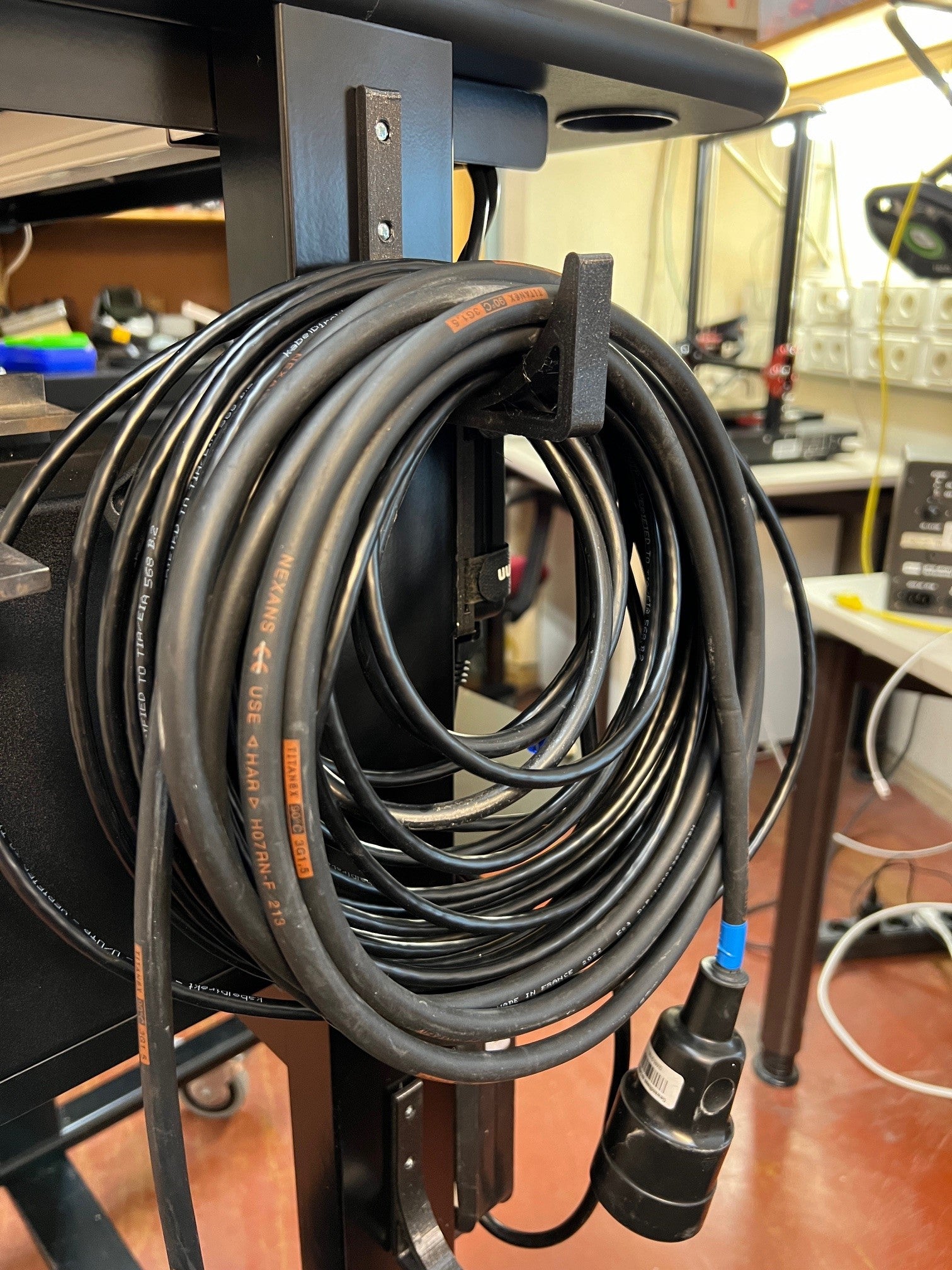 Este robusto sujetacables está diseñado para proporcionar una solución práctica y segura para la organización de cables, especialmente en carros rodantes. Con un tamaño de aproximadamente 90x90 mm, ofrece un amplio espacio para realizar un seguimiento de varios tipos de cables, como cables XLR y de alimentación, lo que lo hace ideal para usar en estudios, talleres o durante eventos.