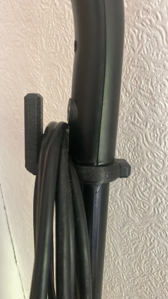 El gancho se desarrolló originalmente como un reemplazo para una pieza defectuosa en un trapeador a vapor, pero su versatilidad significa que se puede utilizar en una amplia gama de aparatos con un diámetro de tubo de aprox. 25 mm. Aunque está diseñado para este tamaño estándar, el modelo se puede adaptar fácilmente a otras dimensiones según sea necesario. La fijación se realiza mediante un método robusto basado en pegamento, lo que garantiza un montaje duradero y fiable que mantiene el cable seguro en su sitio.