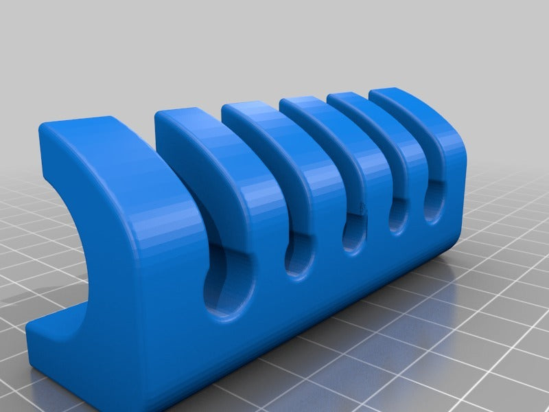 El soporte para cables está equipado con cinco ranuras flexibles que pueden acomodar diferentes grosores de cable. Incluye tres ranuras con un diámetro de 5,0 mm y dos ranuras más anchas de 7,5 mm, lo que permite organizar tanto cables delgados como ligeramente más gruesos uno al lado del otro. Esto garantiza que pueda adaptar la solución a sus necesidades específicas.