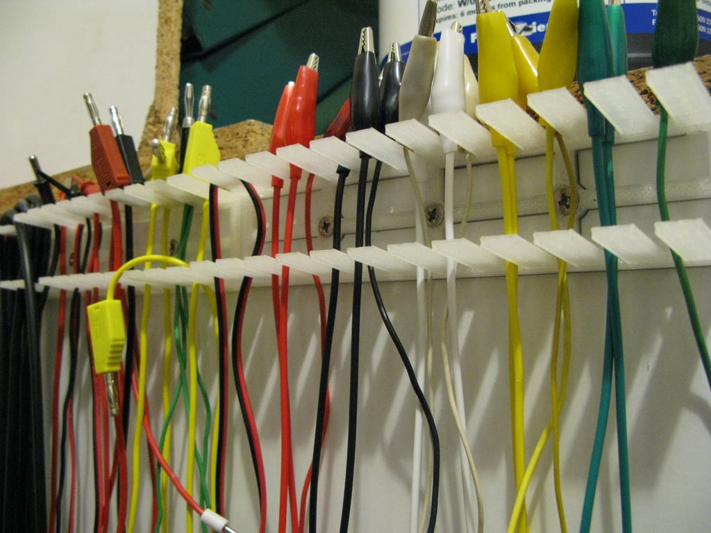 Este práctico colgador y organizador está diseñado para mantener controlados sus cables de prueba. Ofrece una solución sencilla para mantener su área de trabajo ordenada y sus cables organizados. El colgador tiene distancias ajustables entre los soportes, lo que permite almacenar una amplia gama de cables de prueba y otros cables electrónicos, independientemente de su grosor. Esto garantiza que sus herramientas necesarias estén siempre fácilmente accesibles y fáciles de entender, lo que optimiza la eficiencia en sus proyectos electrónicos.