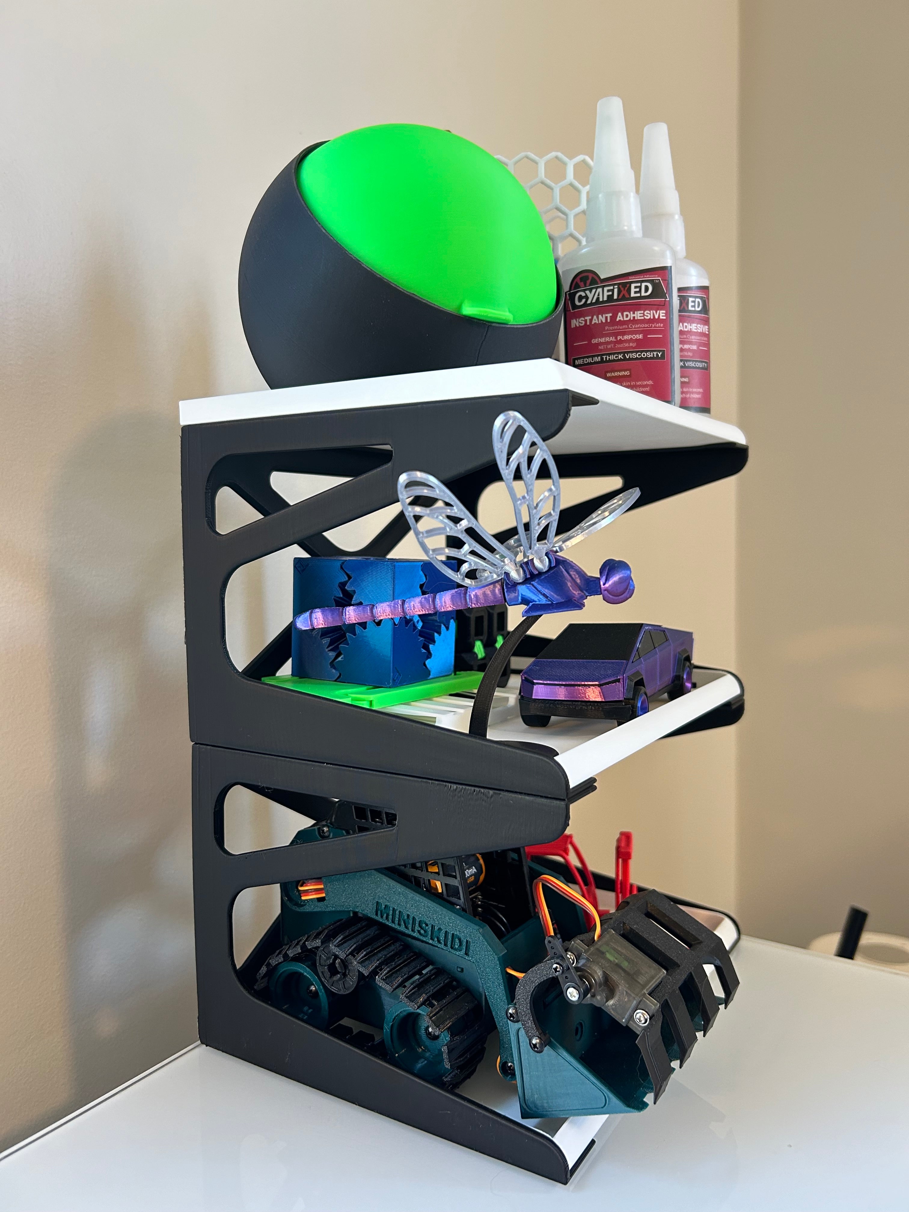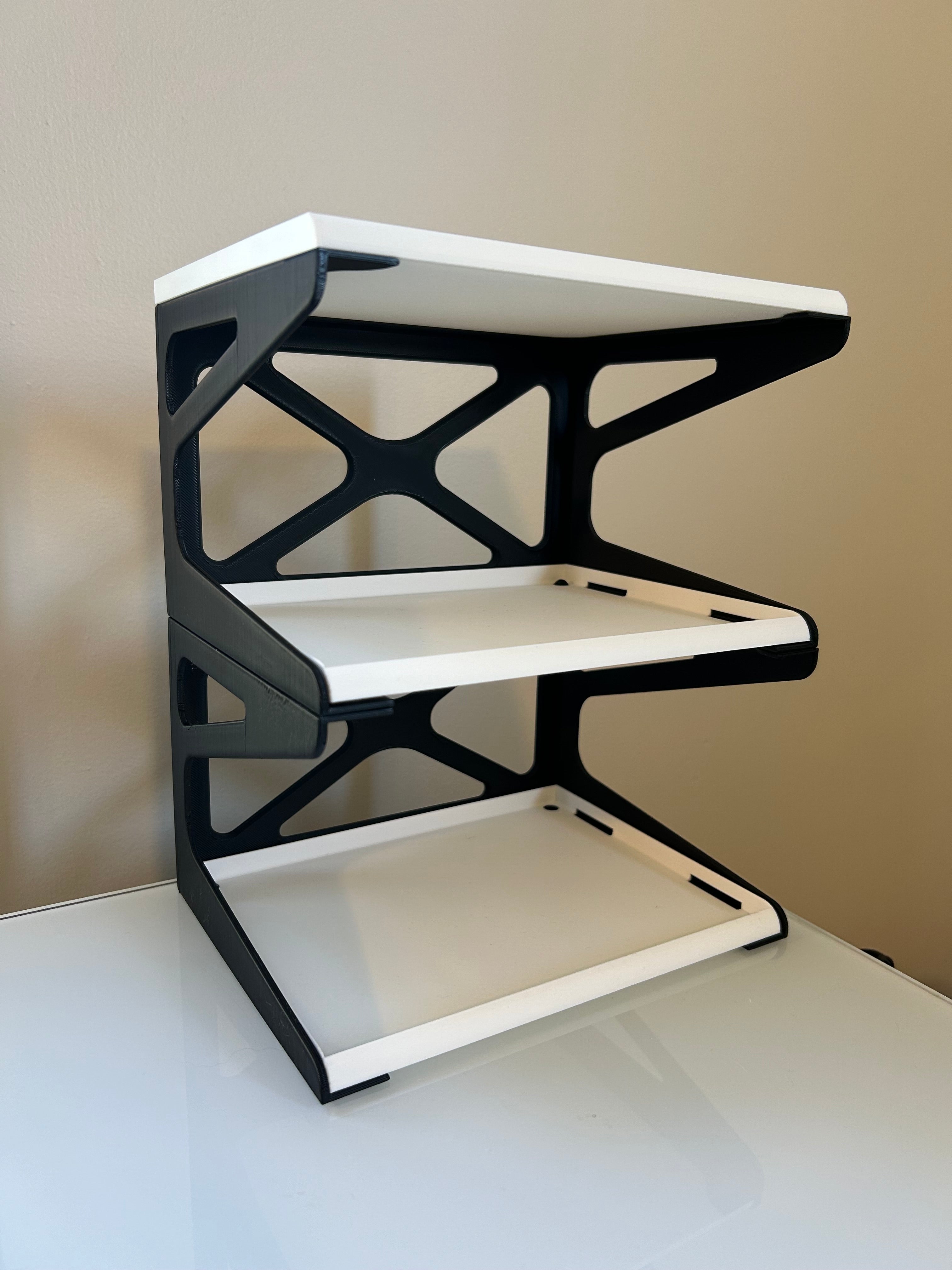 Descubre la solución perfecta para organizar tu área de trabajo con este sistema de organización de estantes apilables. Te permite apilar fácilmente tu almacenamiento tanto vertical como horizontalmente, liberando valioso espacio en tu escritorio. Con un diseño robusto y un uso eficiente del filamento, este organizador es una elección práctica para cualquier lugar de trabajo.