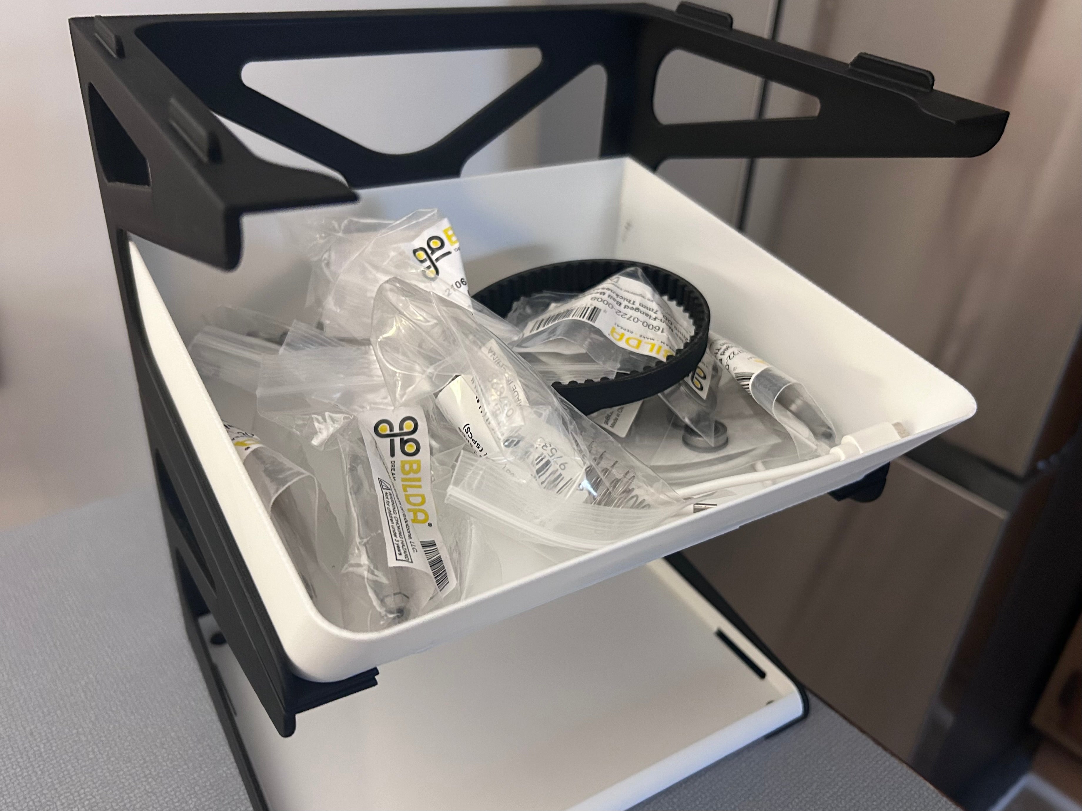 Las estanterías están diseñadas para ensamblarse sin el uso de pegamento o tornillos, lo que hace que la configuración sea rápida y sencilla. Además, el sistema incluye una bandeja estándar en la parte inferior de cada estante, así como una bandeja superior que brinda un acabado estético al estante superior.