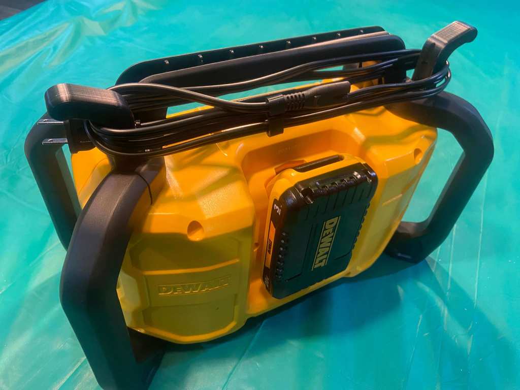 Este práctico soporte para cables está diseñado específicamente para la radio DeWalt DCR028 y resuelve el problema de guardar el cable de alimentación de CA extraíble cuando la radio funciona con batería. El soporte para cables se monta discretamente detrás del asa de transporte de la radio, lo que garantiza que el cable de alimentación esté almacenado de forma segura y sea fácil de encontrar de nuevo. Con esta solución, evita perder el cable y puede mantener su área de trabajo más organizada y libre de desorden. También hay disponible una versión inversa opcional, en caso de que prefiera un enrollado de cable diferente. Para asegurar aún más el cable, se puede usar un gancho en S o un clip de alambre similar para sujetarlo después de enrollarlo, lo que proporciona una solución de almacenamiento aún más estable.