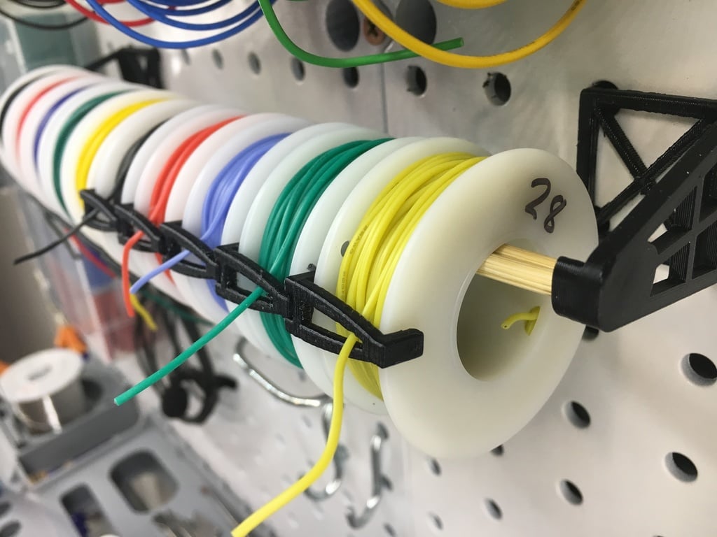 Este práctico soporte para cables está diseñado para montarse en un panel perforado y es ideal para realizar un seguimiento de sus carretes de cables. Ayuda a crear un espacio de trabajo organizado y ordenado donde sus cables estén siempre fácilmente accesibles.