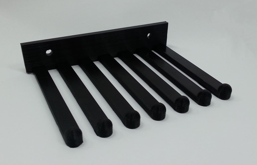 El soporte contribuye a un área ordenada y más funcional al reunir sus cables en un solo lugar. Tiene la opción de personalizar el número de compartimentos y el tamaño de los brazos de agarre, lo que le permite adaptar el soporte exactamente a los tipos y cantidades de cables que desea almacenar, y funciona como un sujetacables eficaz. Esto garantiza una solución de almacenamiento óptima y personalizada que se adapta a sus necesidades individuales y contribuye a un entorno bien ordenado.