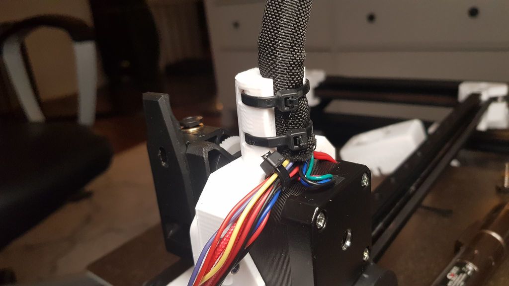 La instalación es sencilla; el soporte para cables se monta utilizando los orificios de las abrazaderas para cables existentes y se desliza fácilmente sobre el motor. Esto asegura un enrutamiento robusto y organizado de sus cables, lo que contribuye a una experiencia de impresión más estable y confiable. Está diseñado para proporcionar una configuración segura y ordenada sin complejidades innecesarias, lo que lo convierte en una instalación fácil para su BLV MGN Cube.