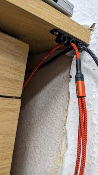 ¿Cansado de cables enredados y un escritorio desordenado? Este soporte para cable USB es la solución ideal para crear orden. Diseñado para sujetar hasta tres cables USB con un diámetro máximo de 6 mm, asegura que sus cables permanezcan en su lugar y sean fácilmente accesibles. Se puede montar fácilmente con tornillos, por ejemplo, debajo de un escritorio, lo que libera un valioso espacio y crea una estación de trabajo más organizada. Con este sujetacables, obtendrá una gestión de cables ordenada y funcional que evita eficazmente el caos de cables. Un práctico sujetacables para un entorno más optimizado.