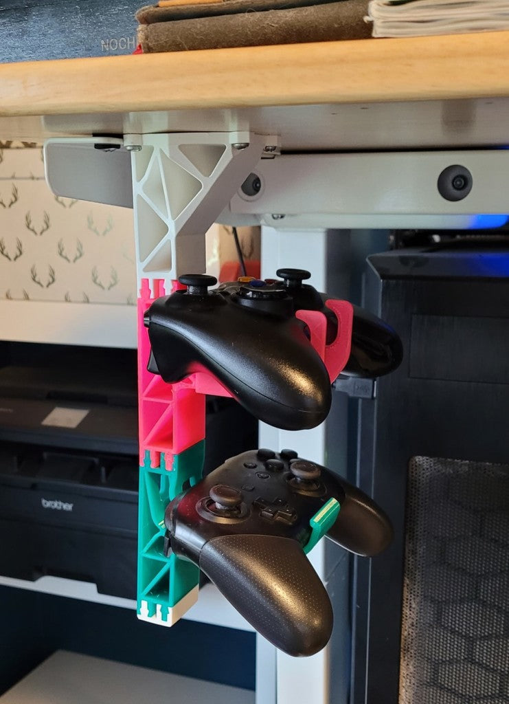 Optimice su espacio de trabajo o de juego con este soporte modular para mandos, diseñado para un montaje discreto debajo del escritorio. Esta innovadora solución libera valioso espacio en la encimera y mantiene su mando organizado y fácilmente accesible cuando lo necesite. El soporte es totalmente compatible con los soportes de mando existentes del diseño original, así como con populares remixes, lo que garantiza una integración perfecta en su configuración actual. También es especialmente adecuado para guardar mandos de Xbox 360.
