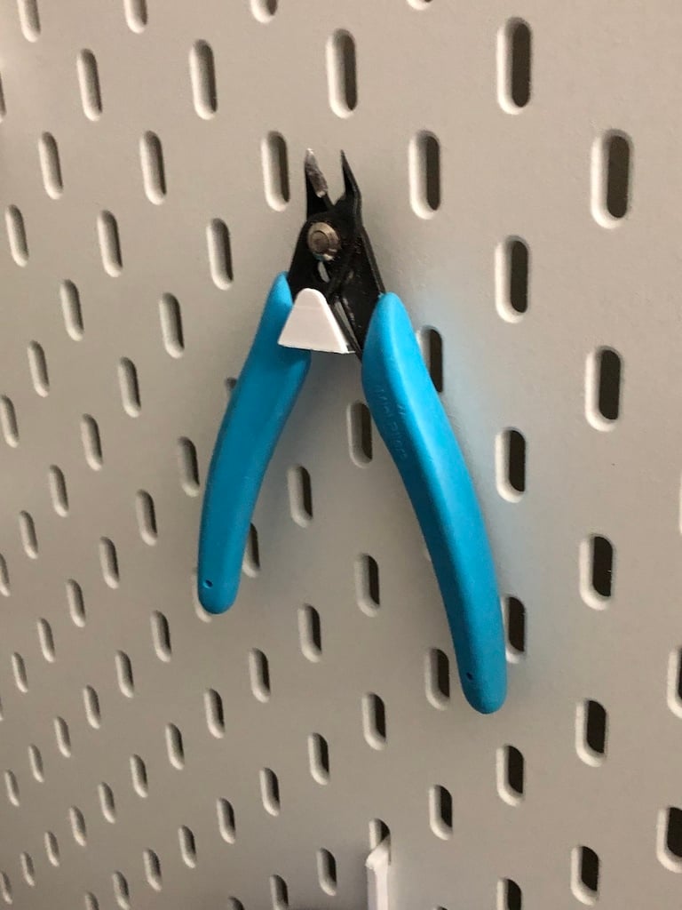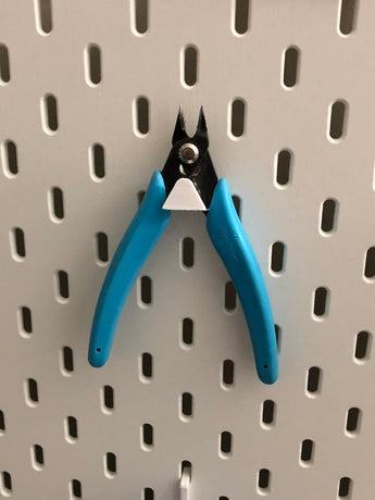 Este práctico soporte está diseñado específicamente para tus alicates de corte y se adapta perfectamente a tu panel de pared IKEA Skadis. Proporciona una solución de almacenamiento organizada y de fácil acceso para tus herramientas de corte, de modo que siempre estén a mano cuando trabajes con electrónica, joyería u otras tareas de precisión donde necesites un soporte para cables fiable. Al utilizar el sistema Skadis, se maximiza tu espacio de trabajo y tus herramientas se mantienen perfectamente en su lugar. La versión 2 del soporte está construida para tener una posición fija y no gira, lo que garantiza que tus alicates de corte permanezcan colocados de forma estable en la dirección deseada.