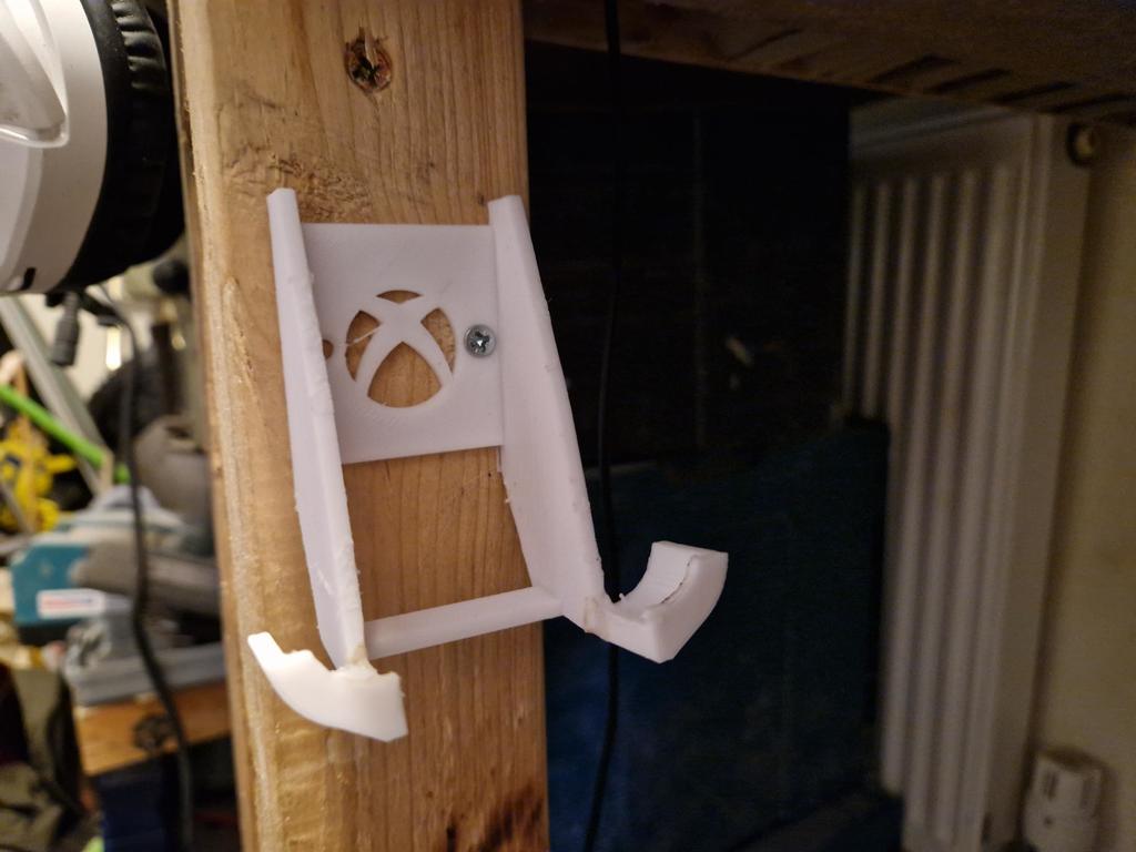 - Soporte de pared de diseio especial que se adapta a los mandos de Xbox con control de volumen Turtle Beach montado.
