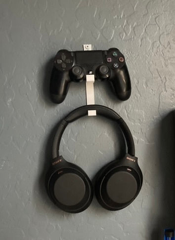 - Soporte de pared para un mando de PS4 y un juego de auriculares.