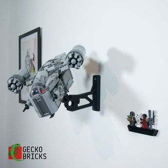 Muestre su LEGO Razor Crest en ocho orientaciones diferentes con este soporte de pared. El brazo ajustable garantiza una presentación segura y discreta de la nave. El set también incluye un soporte de pared separado para sus minifiguras, que se instala fácilmente sin grandes modificaciones.