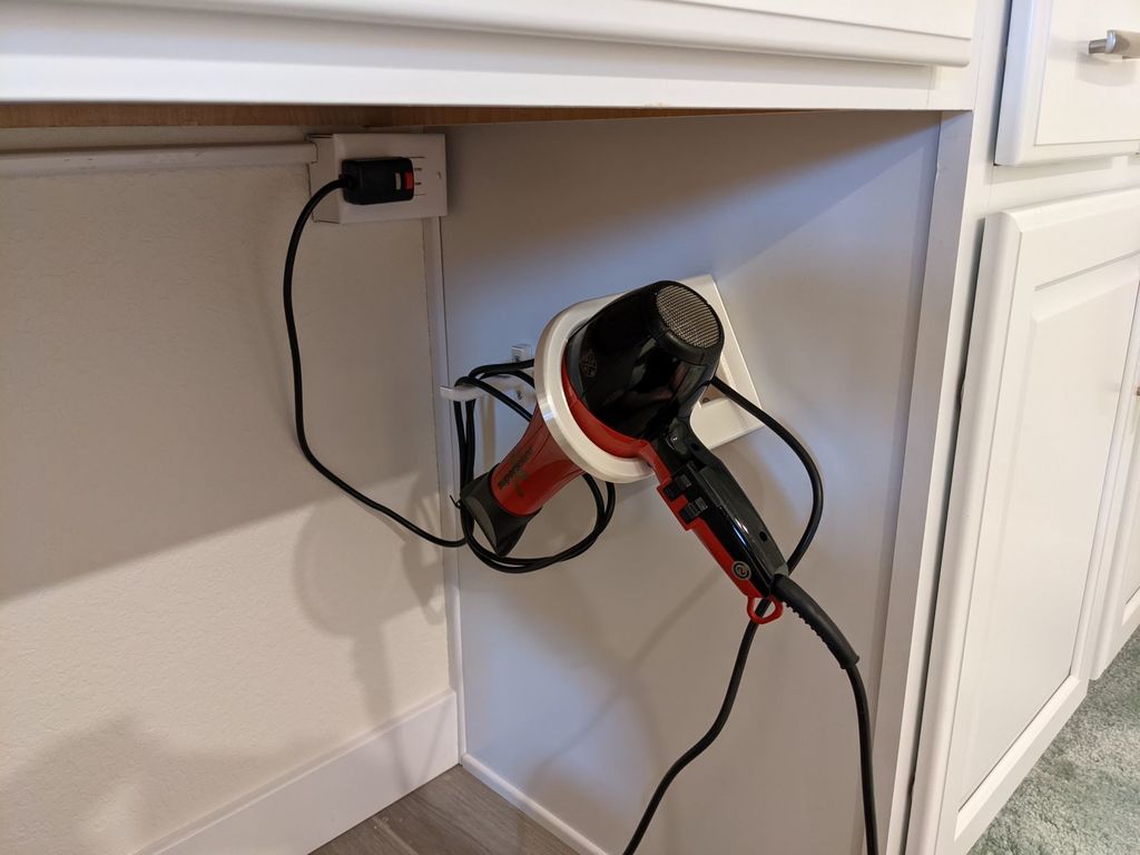 Soporte para secador de pelo para montaje lateral con gancho para cable