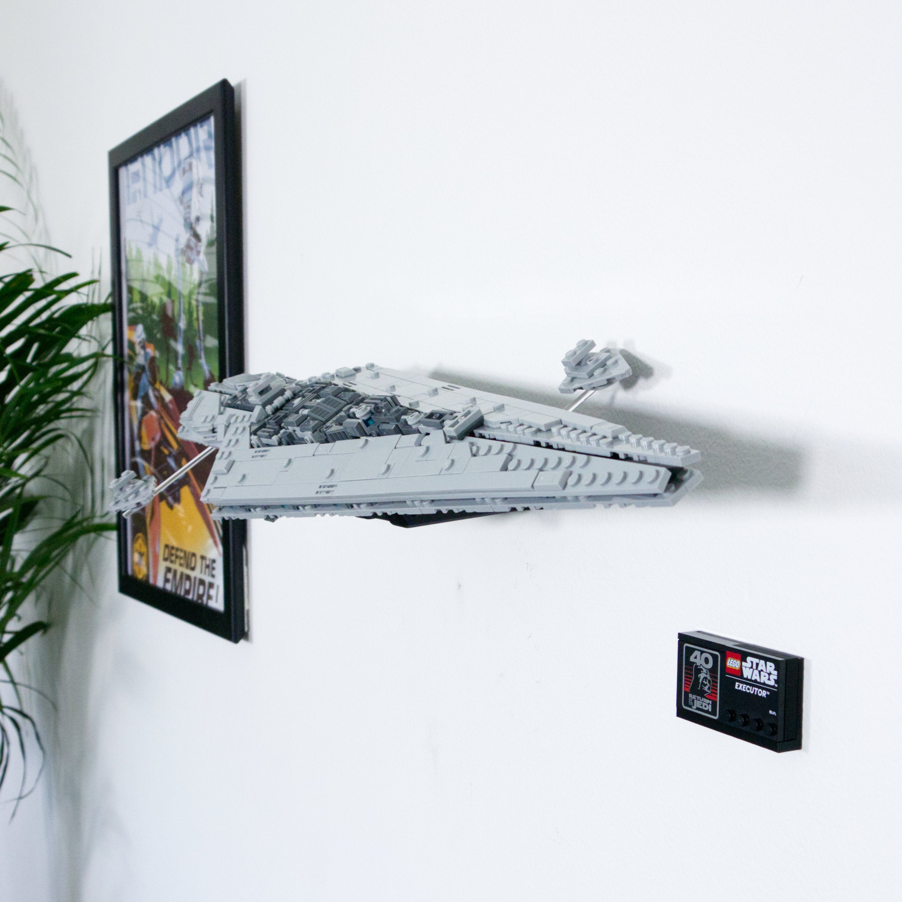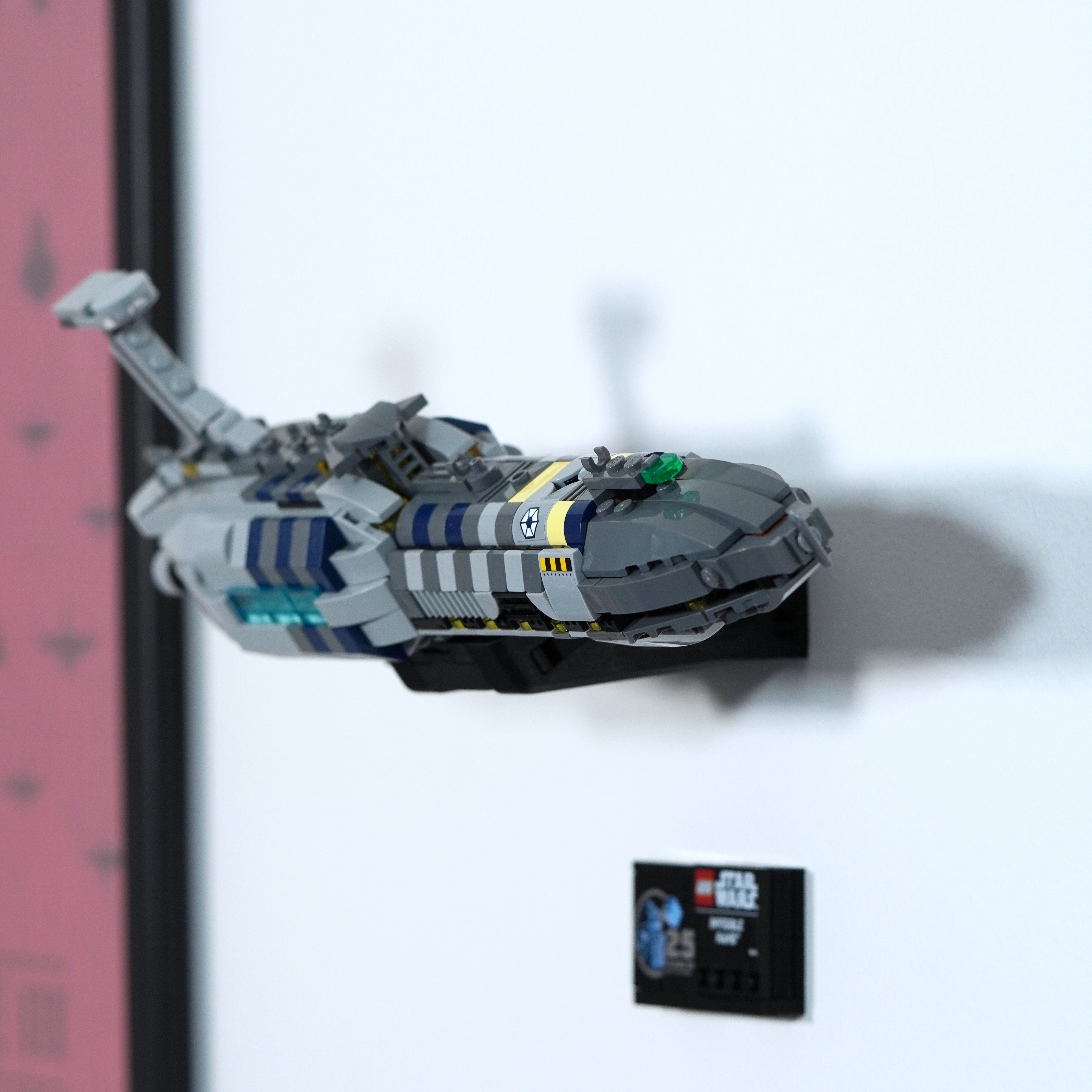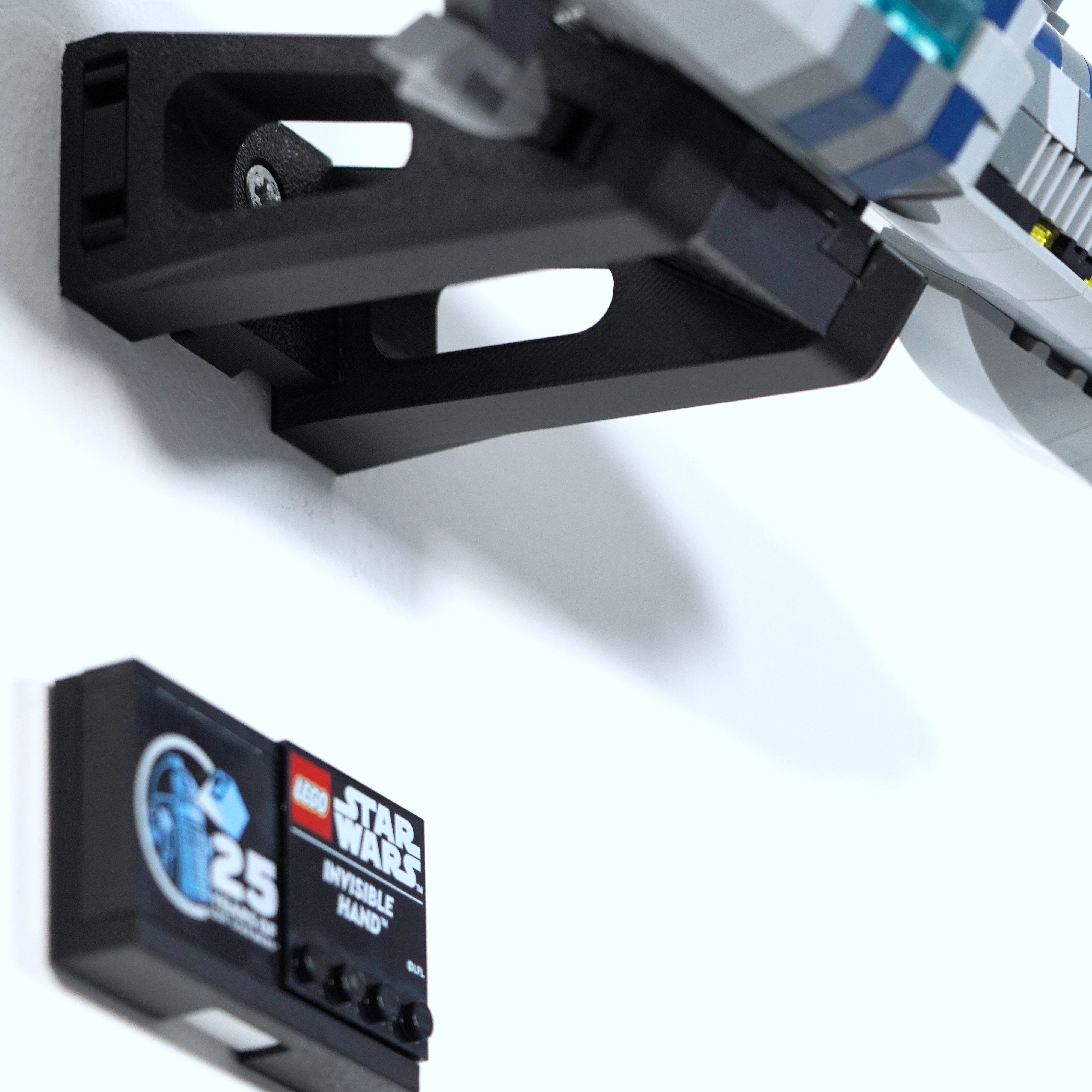 Este soporte de pared ajustable le permite exhibir sus sets de Star Wars Midi Scale de forma ordenada junto con sus bases originales. Se monta de forma segura con dos tornillos y facilita la extracción de los modelos. Perfecto para organizar sets como el Halcón Milenario y el Tantive IV en la pared.