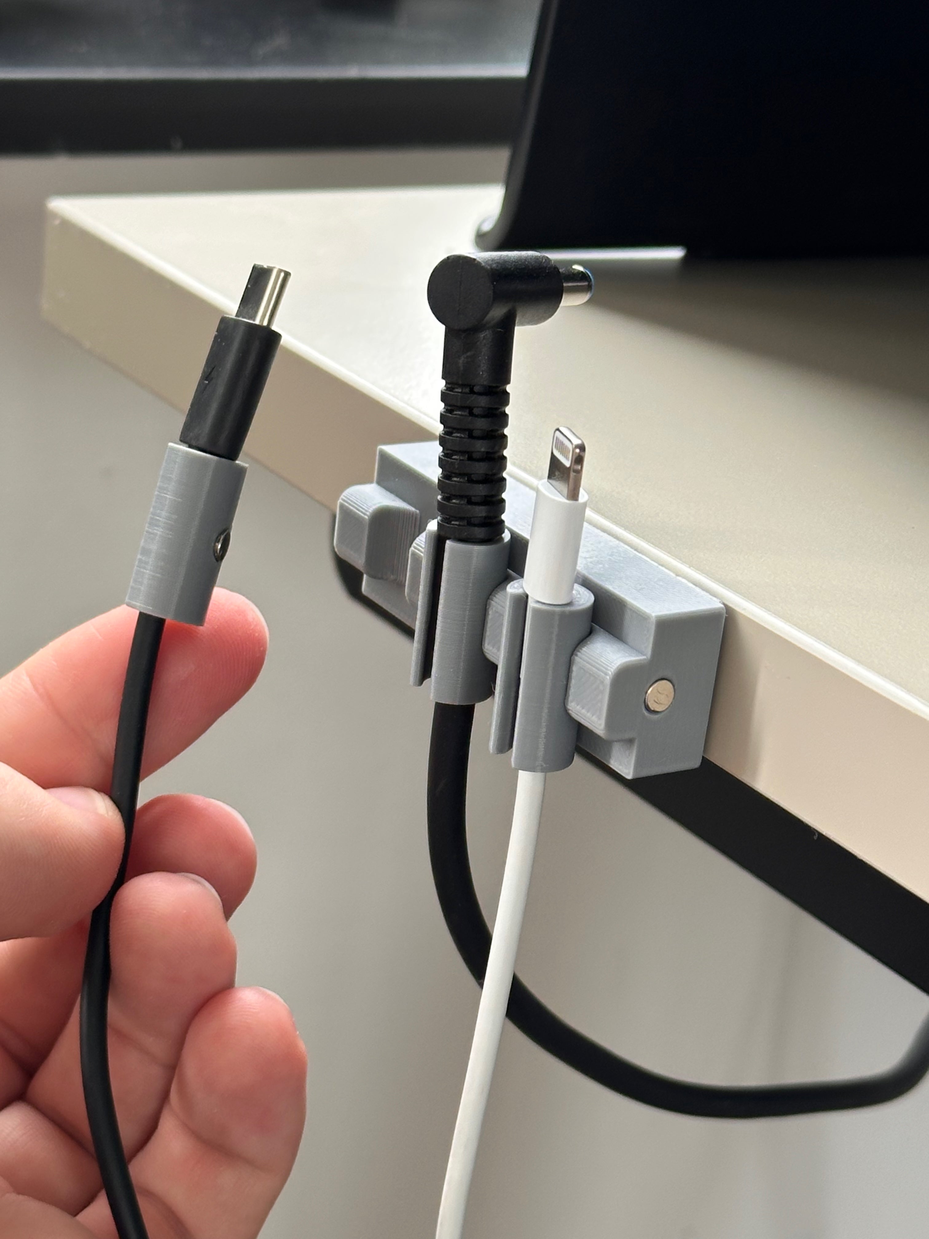 Con este soporte magnético para cables, puede crear fácilmente un espacio de trabajo más organizado y ordenado. Está diseñado para realizar un seguimiento eficaz de sus cables y alambres, y ayuda a eliminar enredos y desorden alrededor de su escritorio u otros lugares. Gracias a los potentes imanes (4x2 mm), este práctico soporte para cables se puede fijar fácilmente a varias superficies, como escritorios, estantes o paredes, mediante cinta adhesiva de doble cara. Esto garantiza que sus cables se mantengan seguros en su lugar y no se caigan. Para una flexibilidad aún mayor y una solución integral de administración de cables, el soporte es apilable, lo que permite conectar varios dispositivos y crear una organización personalizada que se adapte a sus necesidades.