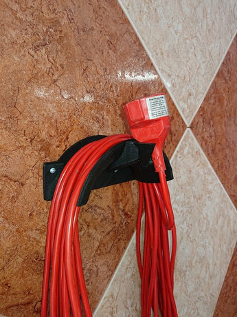 Este soporte para cables está diseñado para proporcionar una solución de almacenamiento organizada y segura para su cable de extensión. Ayuda a mantener el área ordenada y minimiza el riesgo de cables enredados o peligros de tropiezos. El soporte para cables está diseñado específicamente con un casquillo incorporado que se adapta a un enchufe tipo Shuko, lo que garantiza que el cable de extensión cuelgue de forma estable y sea fácil de agarrar cuando sea necesario. Es un práctico soporte para cables que contribuye a un entorno más estructurado, donde sus cables están cuidadosamente almacenados y protegidos.