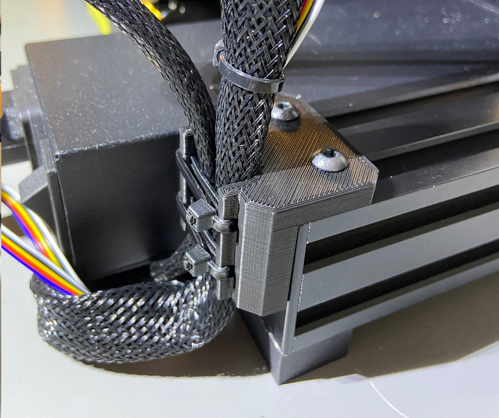 La instalación es sencilla y se realiza mediante tornillos y bridas que fijan de forma segura el soporte a la parte posterior de la impresora. Una abrazadera de cable eficaz que ayuda a mantener un área de trabajo ordenada y que funcione bien para su impresora 3D.