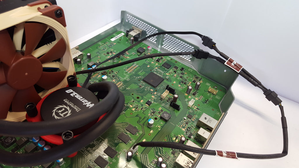 Esta solución permite una disipación de calor eficiente para su Xbox One, lo que puede contribuir a un rendimiento más estable y potencialmente mejor. Para una eficiencia de refrigeración óptima para el radiador, se recomienda utilizar un ventilador Noctua NF-F12 PWM. Tenga en cuenta que puede ser necesario adaptar el conector PWM para que se ajuste al conector J7C1 de la placa base Xbox One y a su disposición de pines específica.